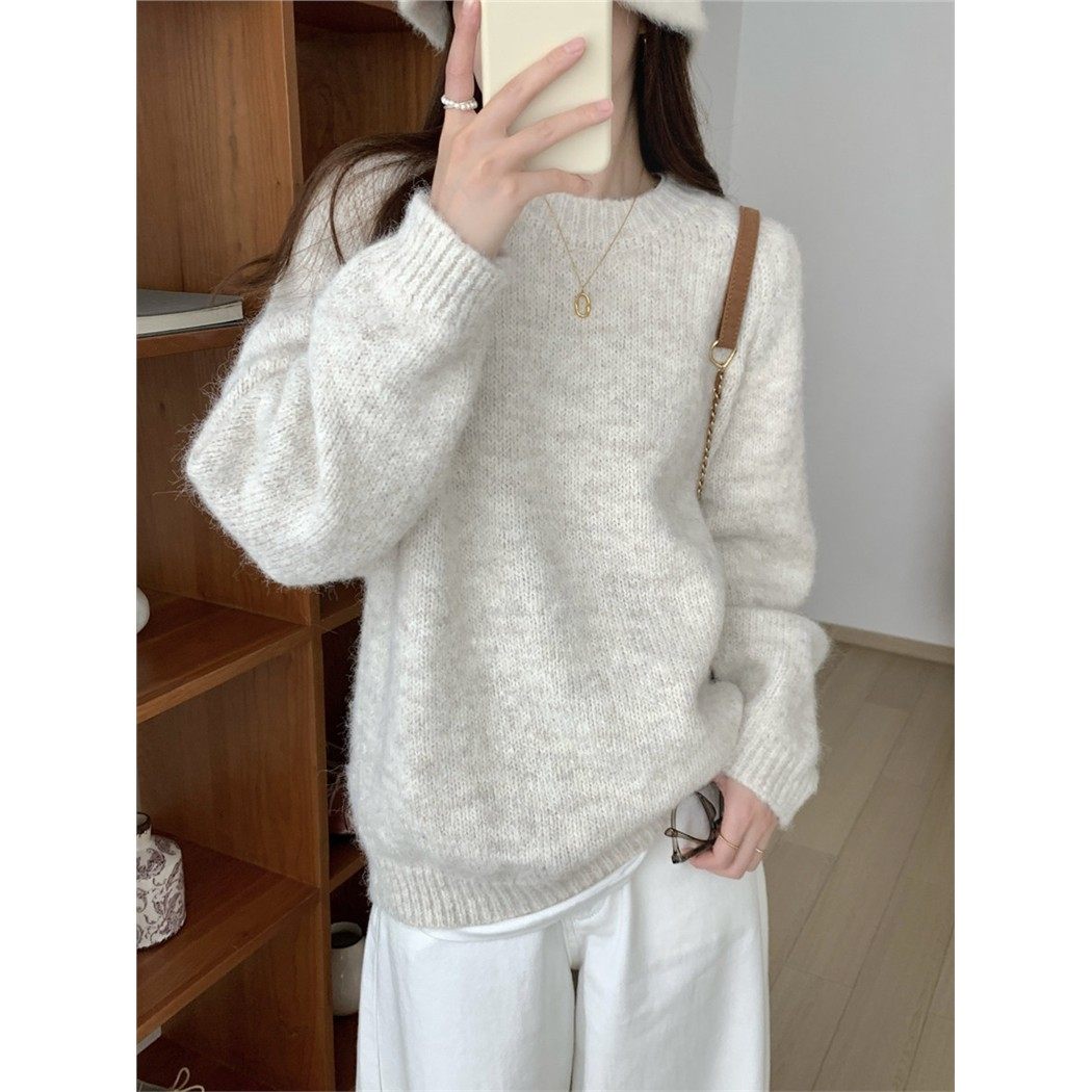 韩系慵懒风毛衣女秋冬季新款圆领软糯内搭宽松长袖套头针织衫上衣