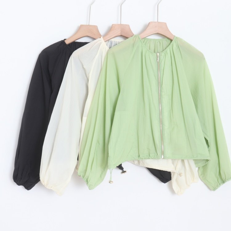 D12085日单新款客供料圆领拉链宽松显瘦薄款防晒衣女纯色短款外套