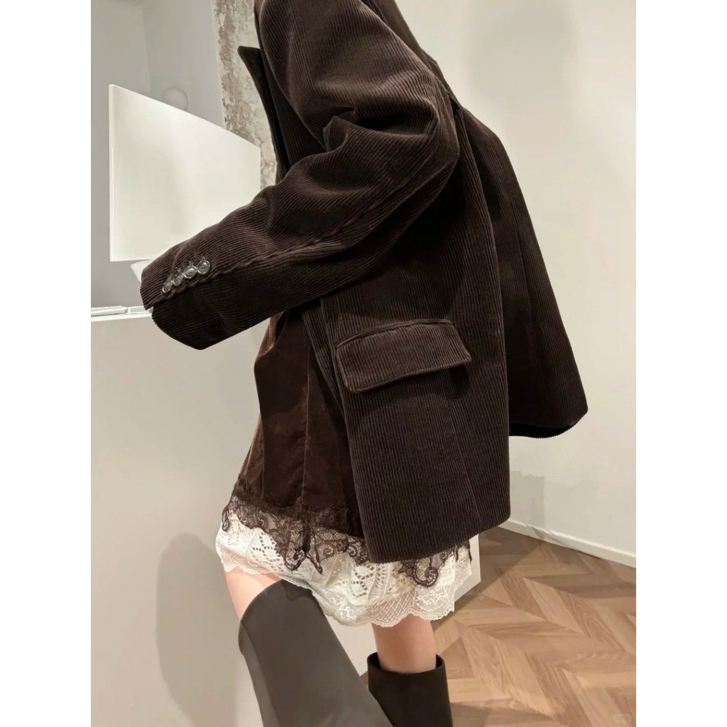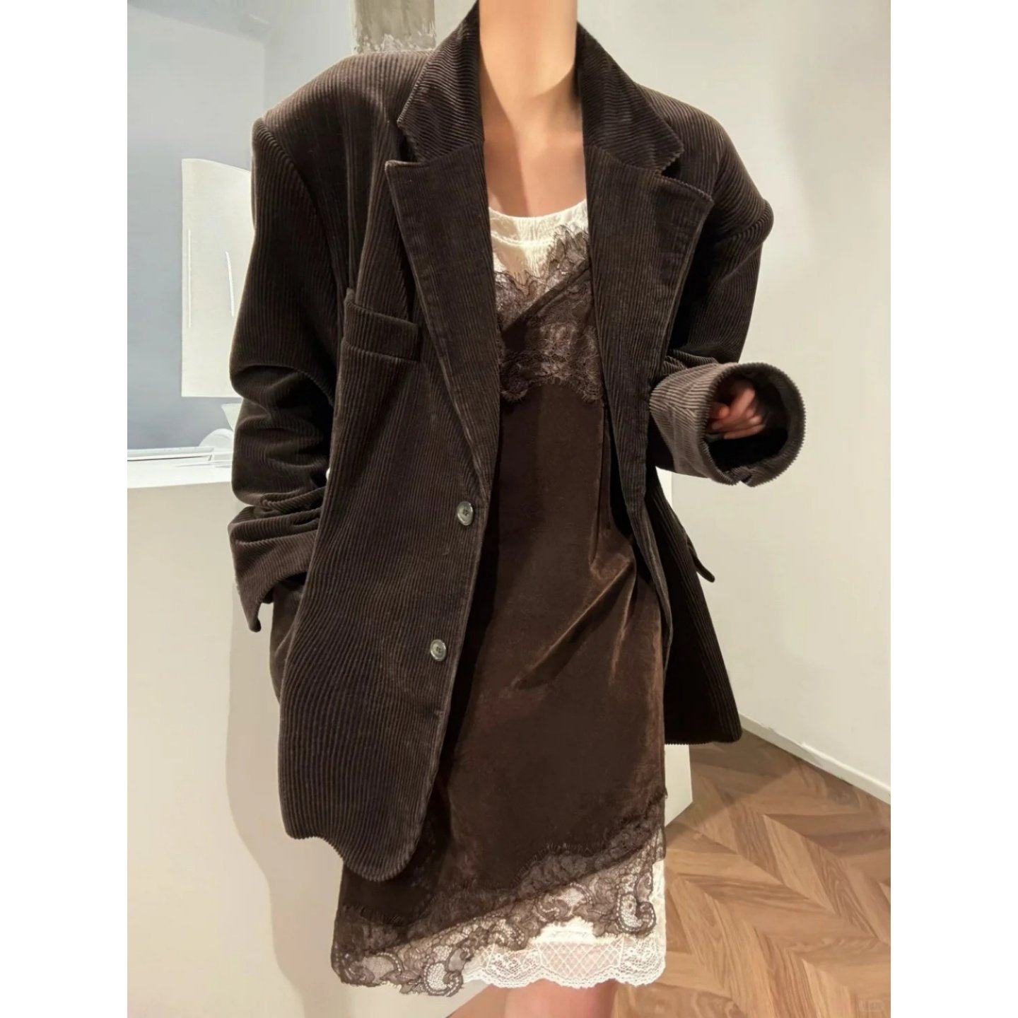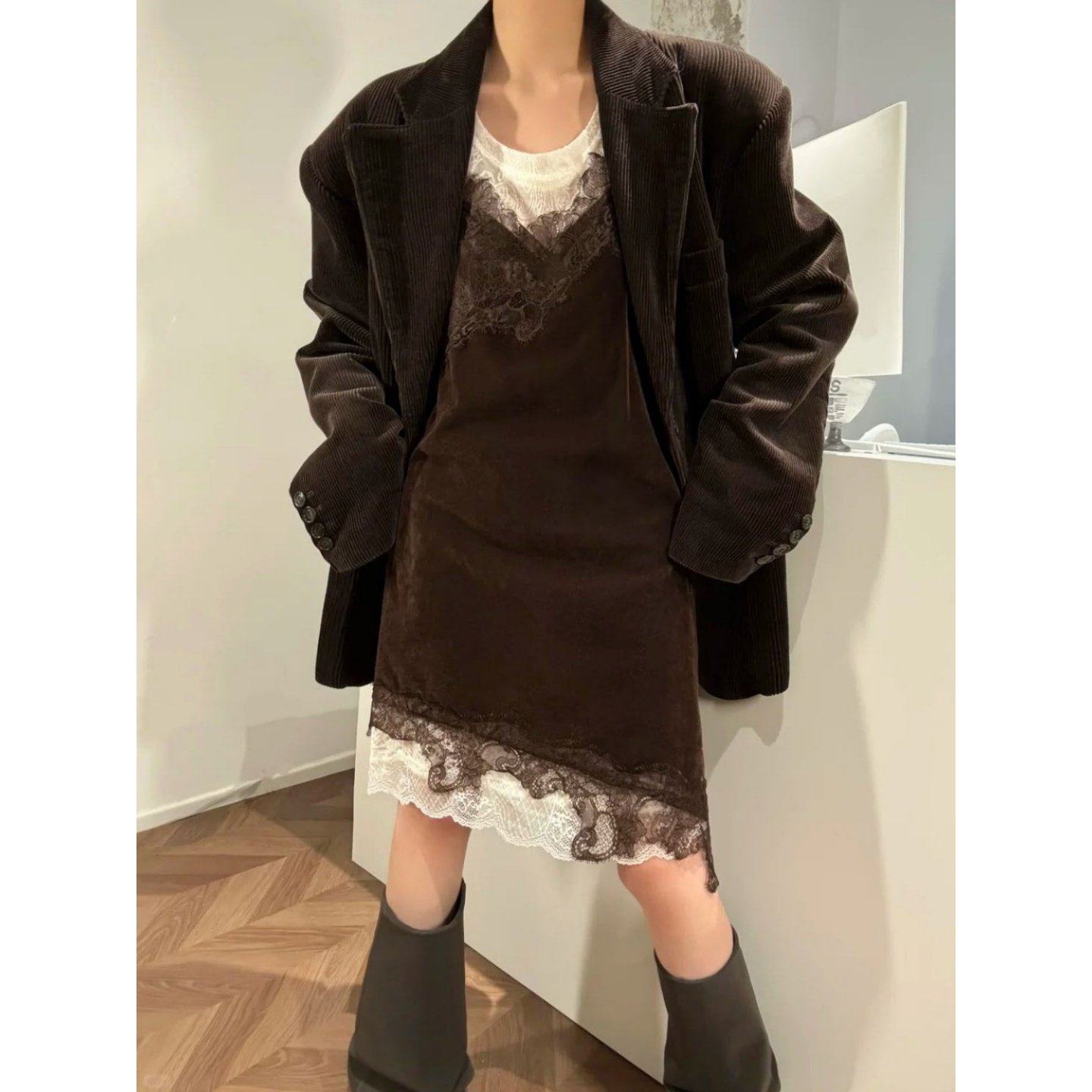 巨好看2026穿搭一整套高级感宽松西装外套叠穿蕾丝拼接吊带裙子