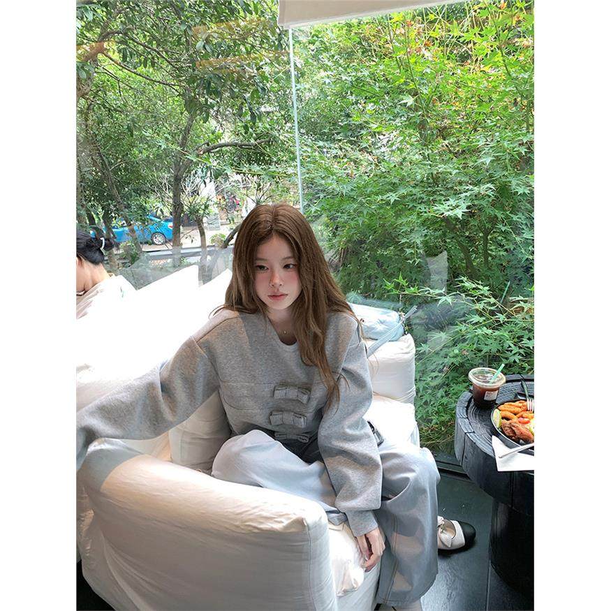 sasaouni蝴蝶结圆领长袖白色卫衣女2025新款巨好看的无帽短款上衣