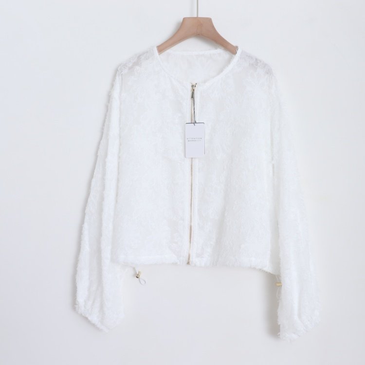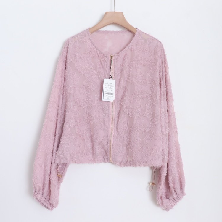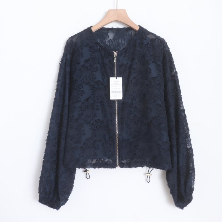 首页> 女装> D160110日单新款客供拉链圆领宽松显瘦女纯色甜美气质睫毛花外套
