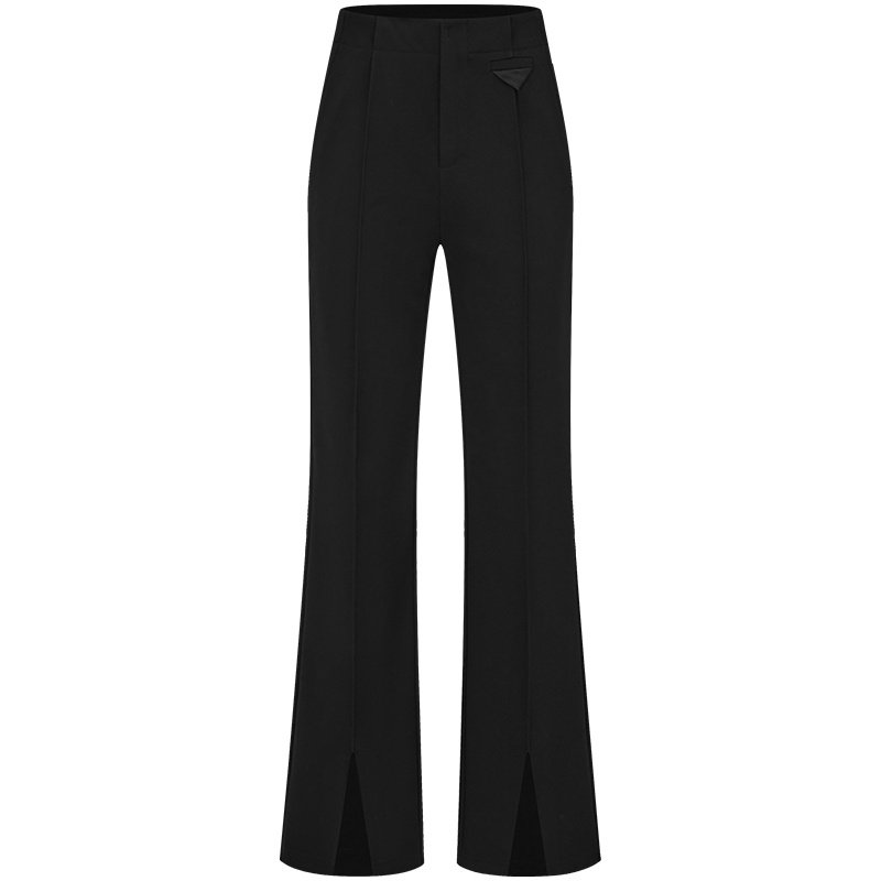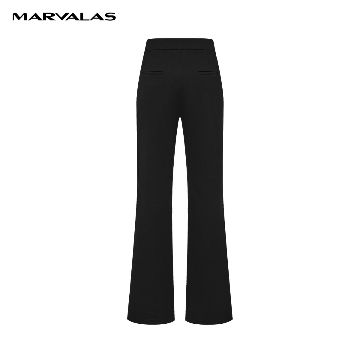 【粉丝专属】曼德诗黑色高腰喇叭裤2025春秋新款纯色弹力休闲长裤