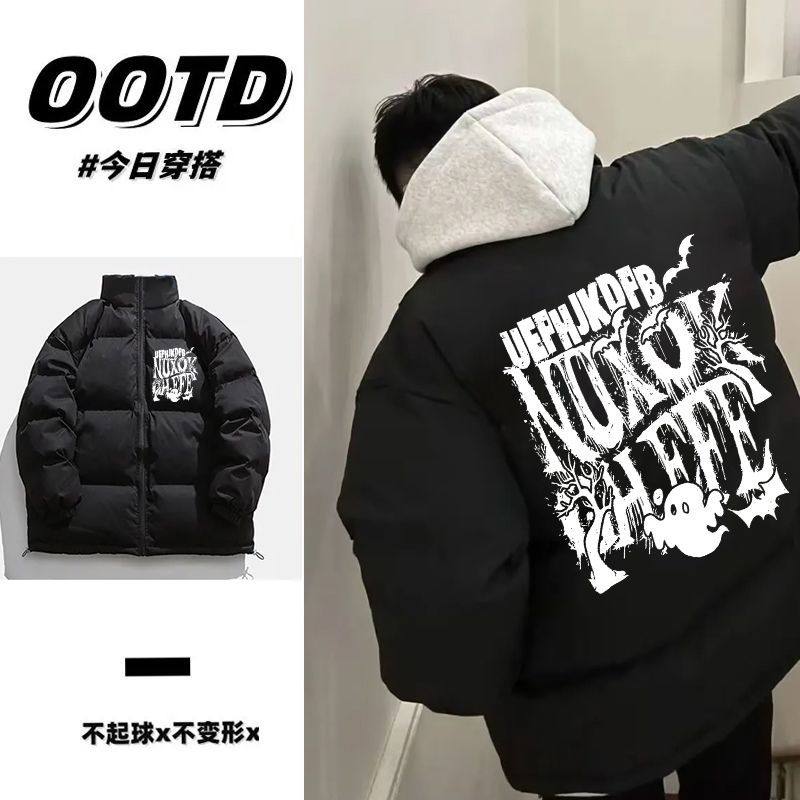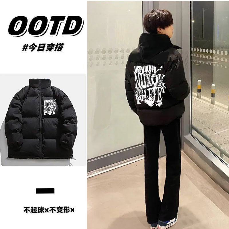 首页> 女装> 美式复古潮牌秋冬季痞帅印花立领棉服男女加厚保暖防风情侣面包服
