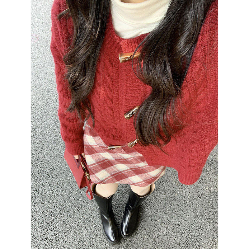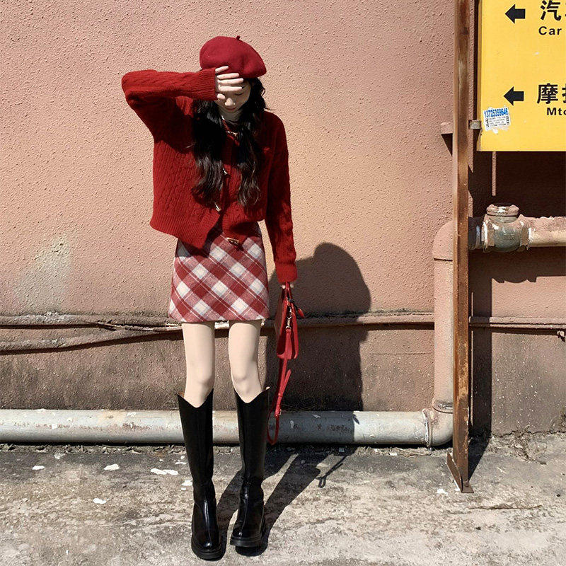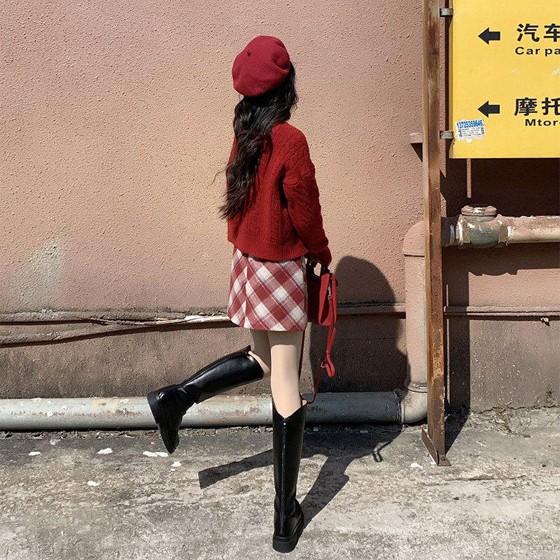 2026新年耶诞战袍拜年过年本命年衣服红色毛衣半身裙子套装秋冬女