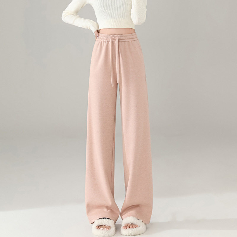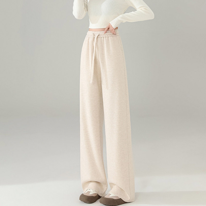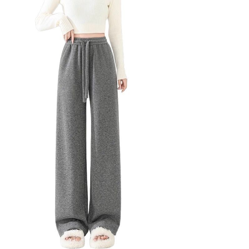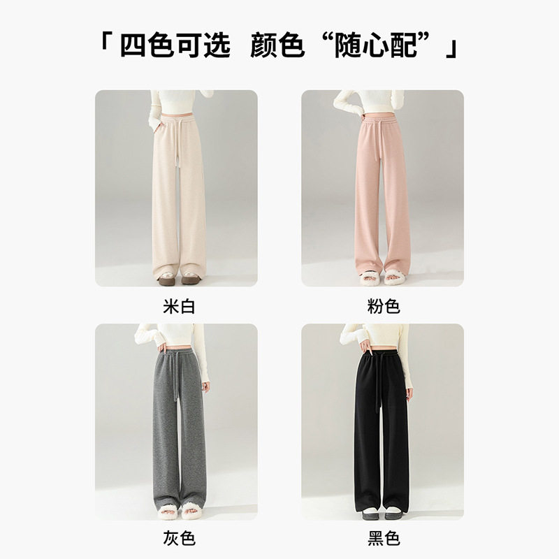 灰色阔腿裤女2025年新款秋冬季醋酸羊毛宽松直筒加绒糯米针织裤子