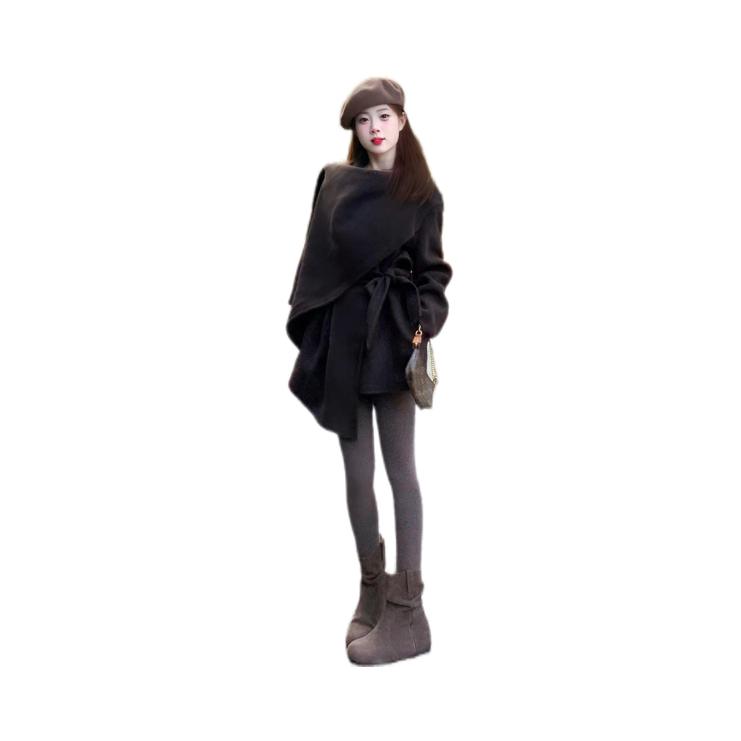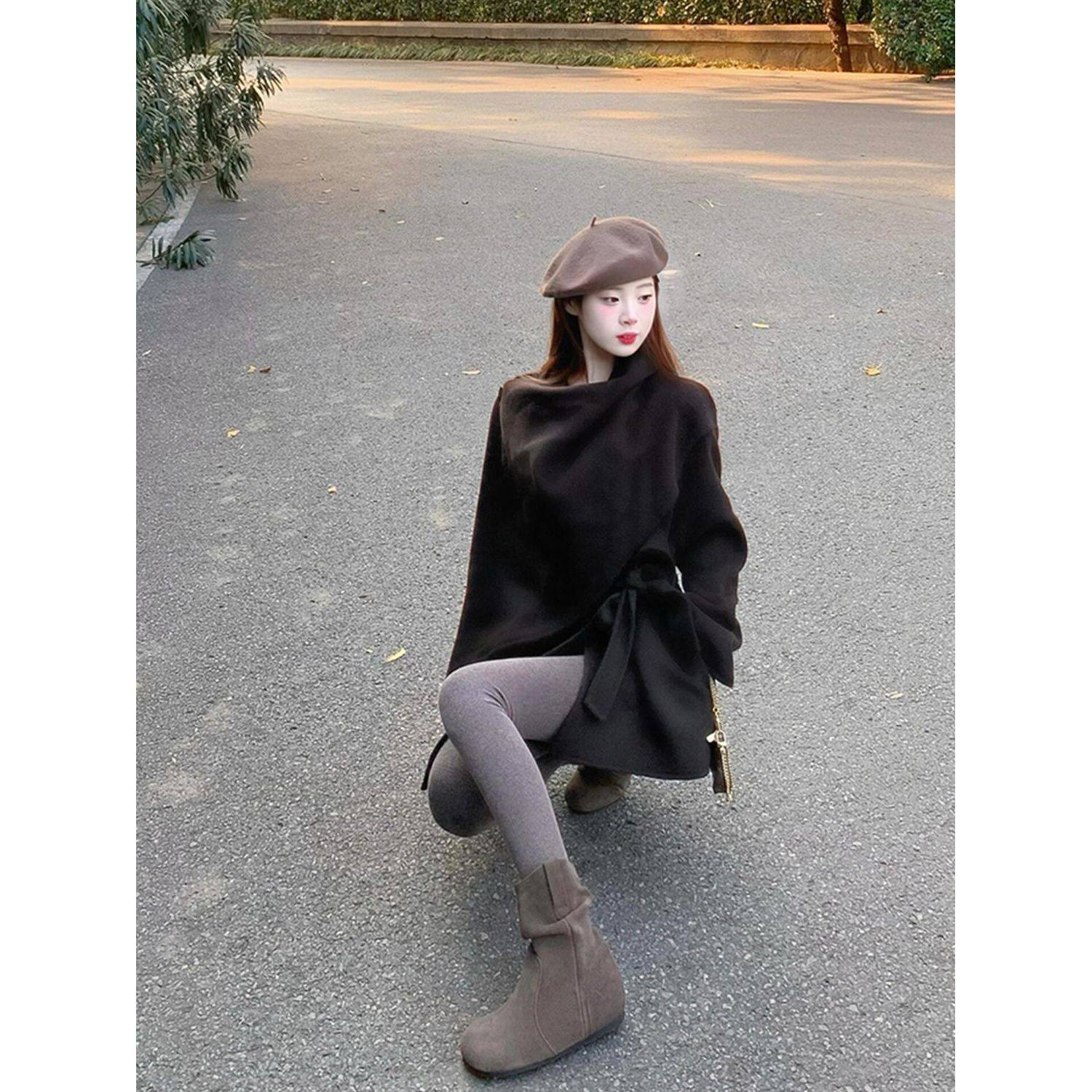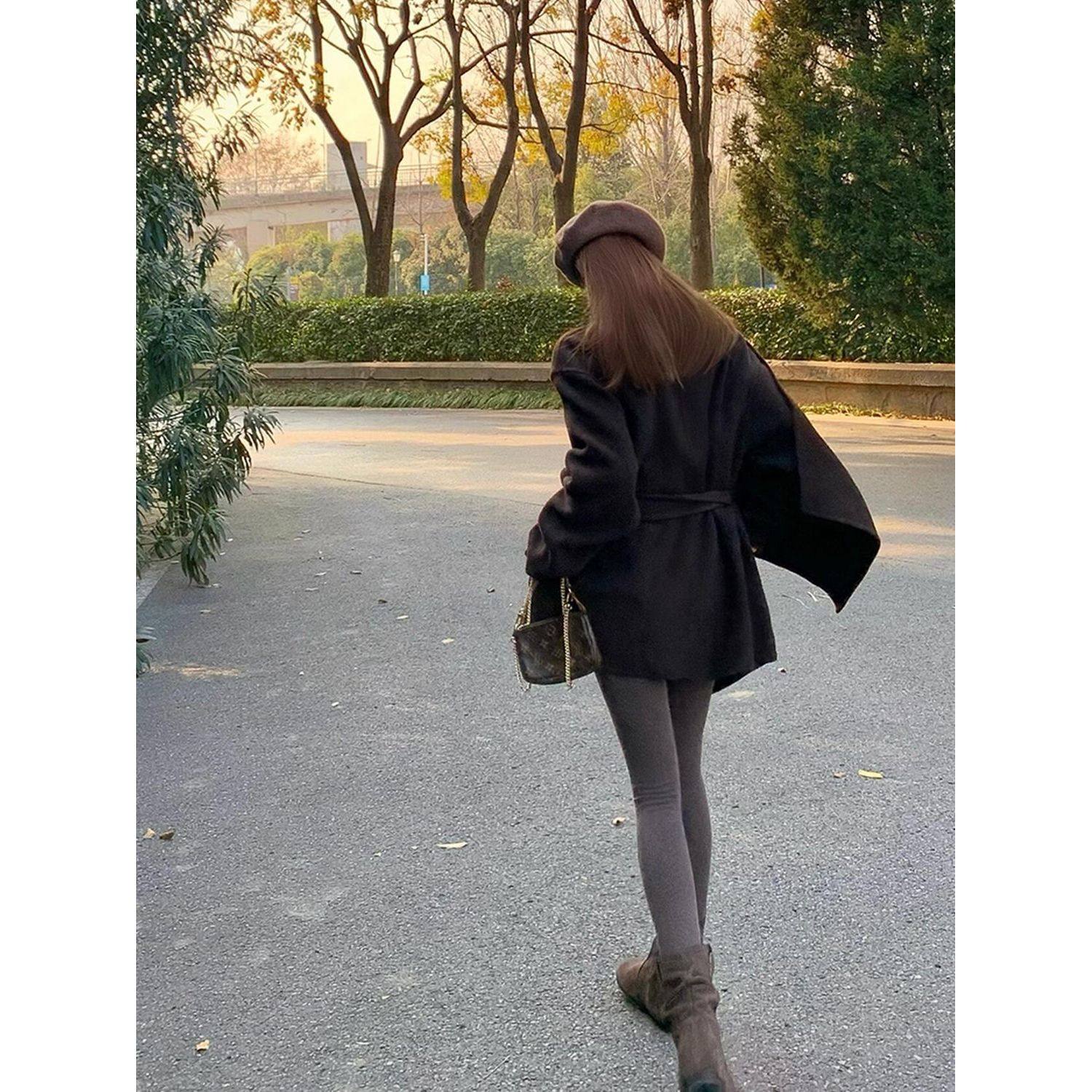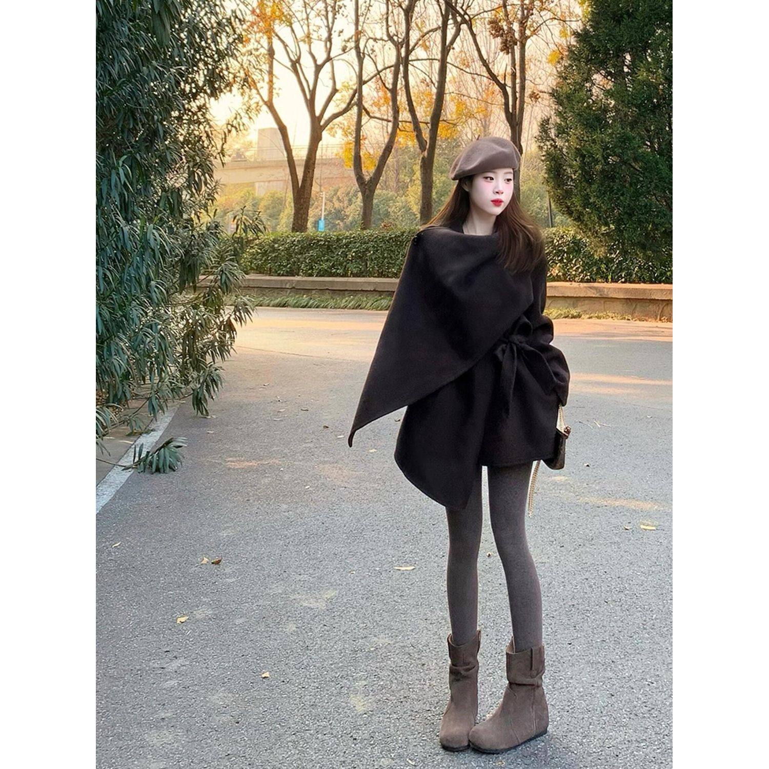 晨雾爱丁堡 韩系高级感小个子富家千金感短款围巾披肩毛呢外套冬