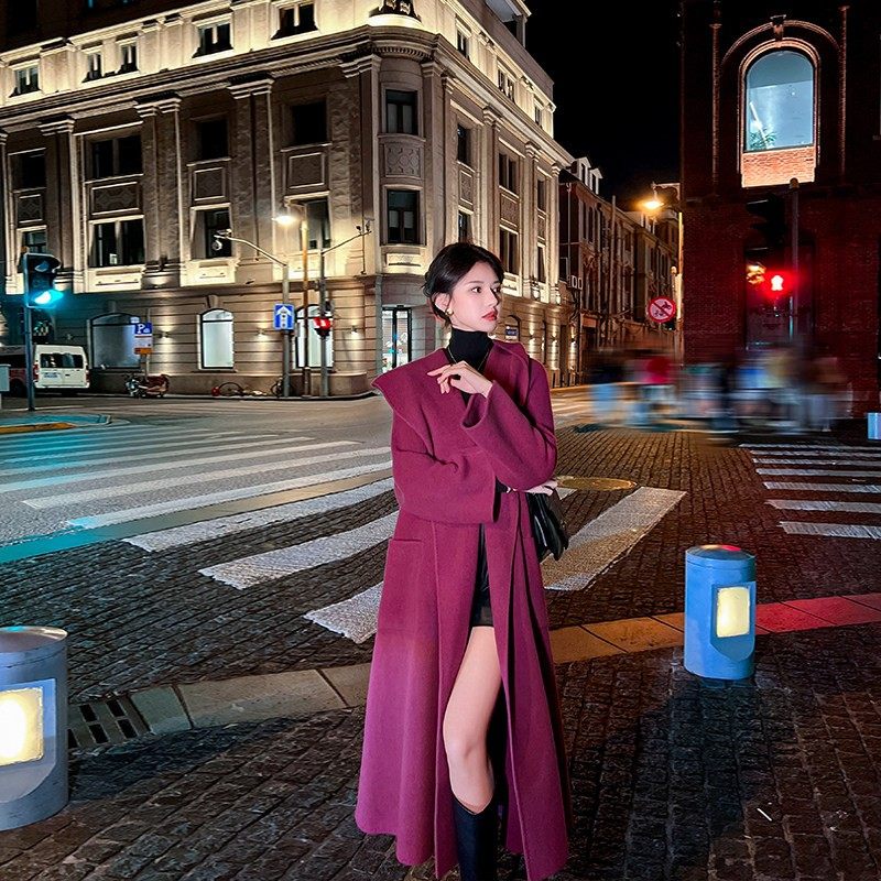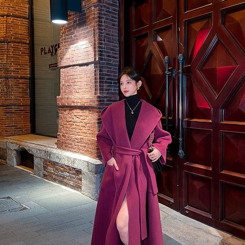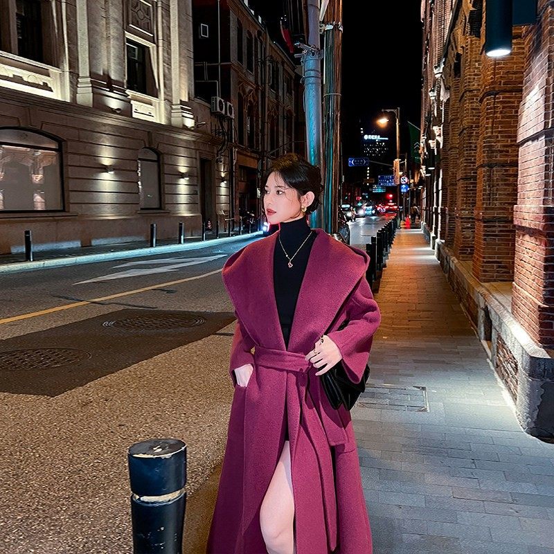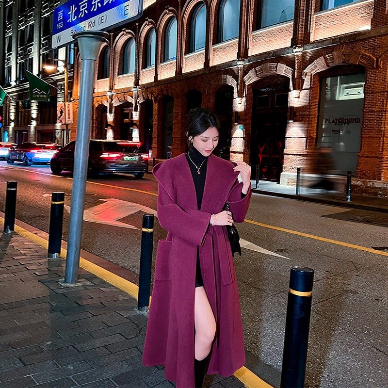 宽松连帽双面羊绒大衣女2024秋冬新款韩系高级感休闲 气质毛呢外