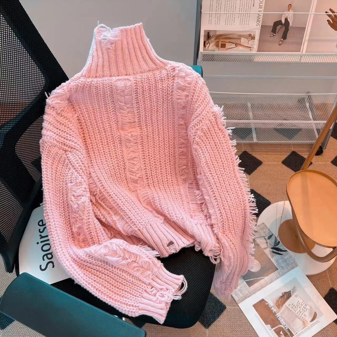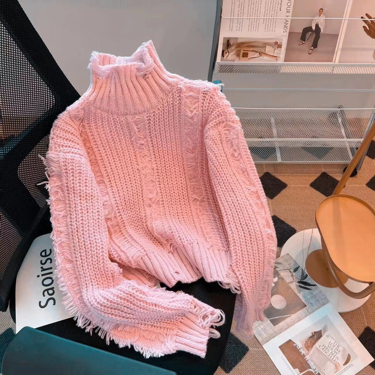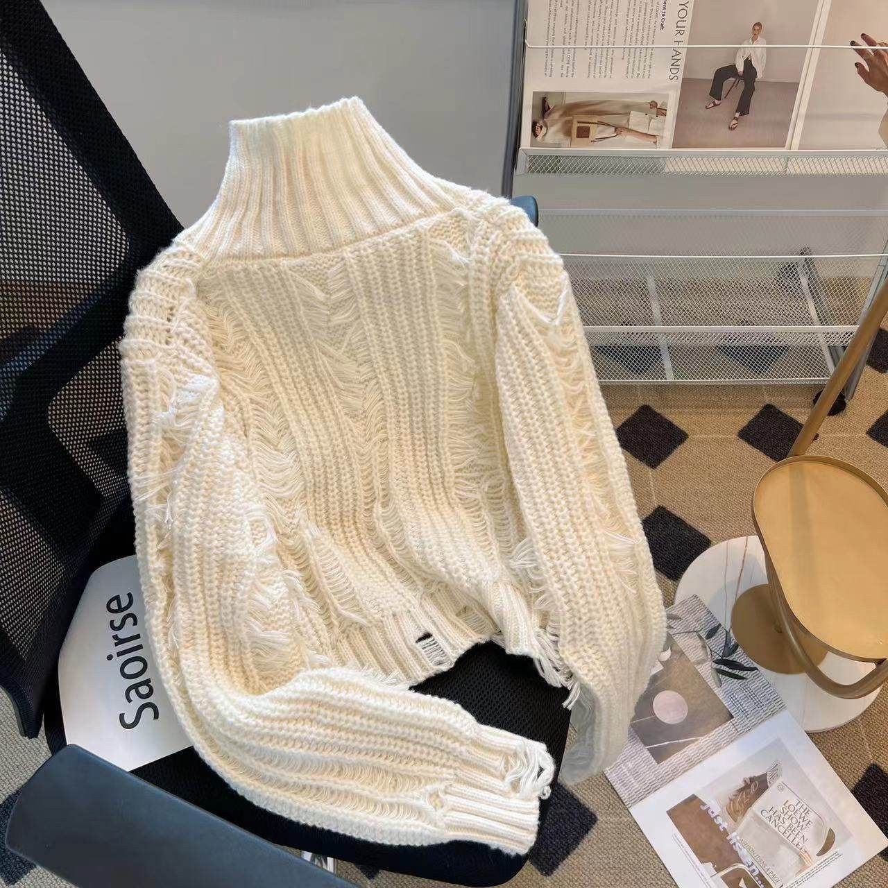 法国Rixo Rane ?时髦流苏高领毛衣女秋冬别致设计感洋气针织衫潮