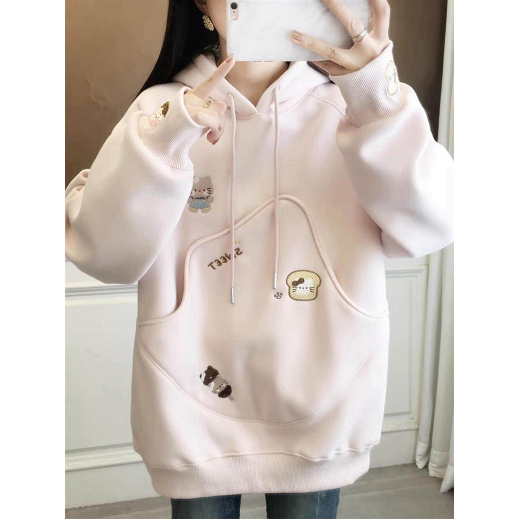秋季女士加厚加绒连帽卫衣冬装新款2025爆款时尚洋气宽松上衣外套