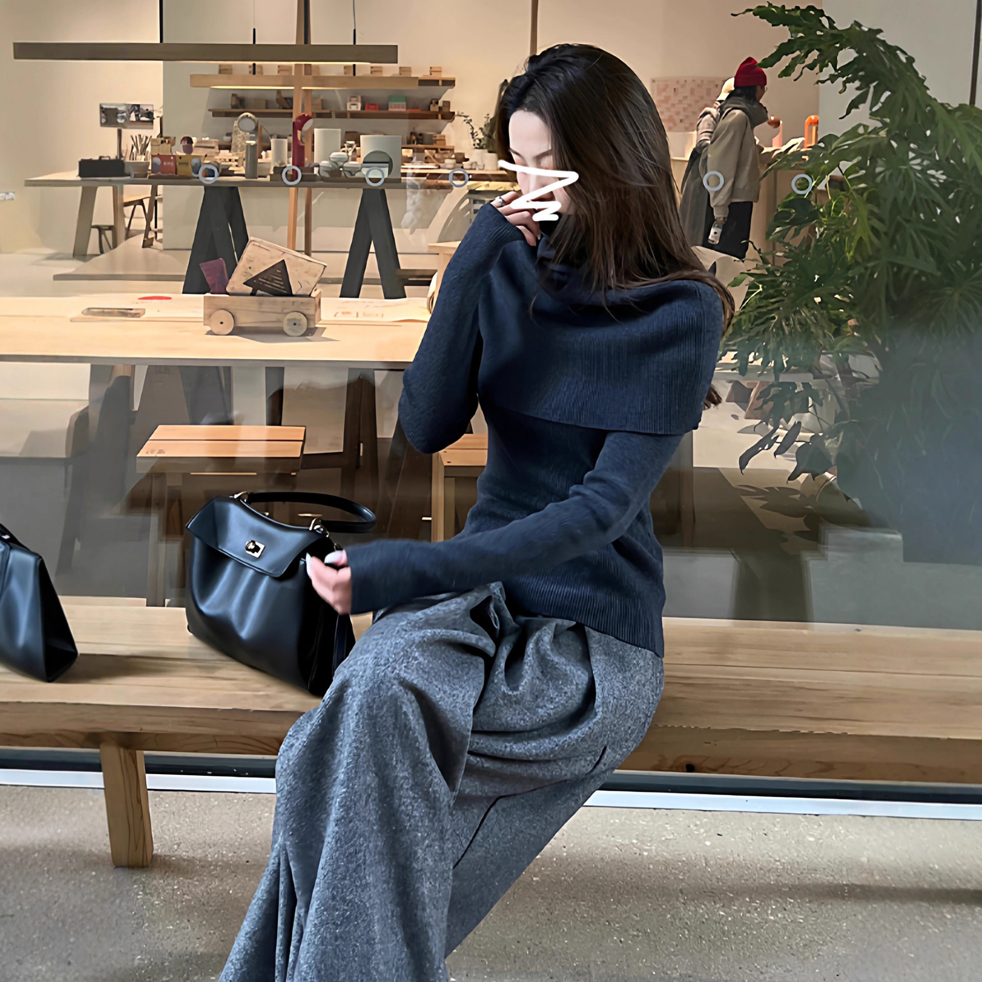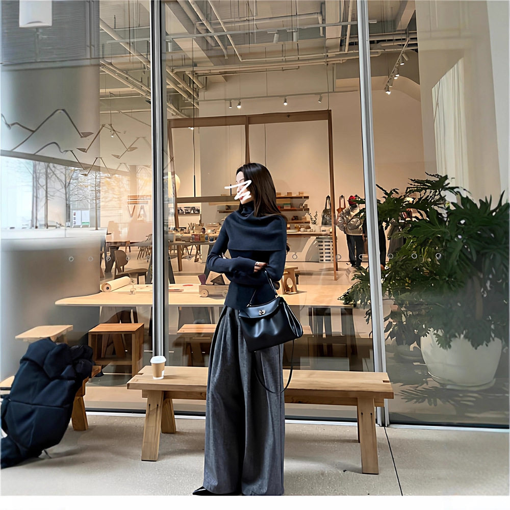 高领斗篷毛衣女秋冬季2025新款慵懒风高级感内搭针织上衣两件套装