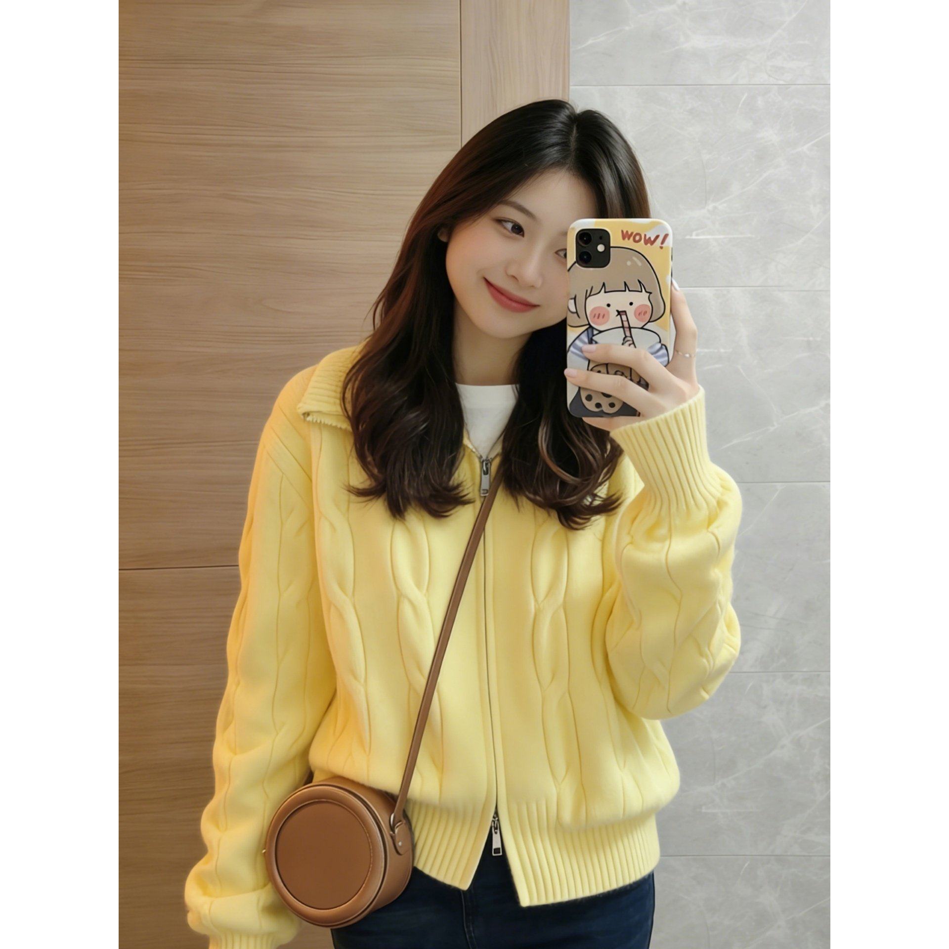 首页> 女装> 时尚保暖内搭高领麻花纹双拉链长袖针织毛衣开衫外套春秋冬季上衣