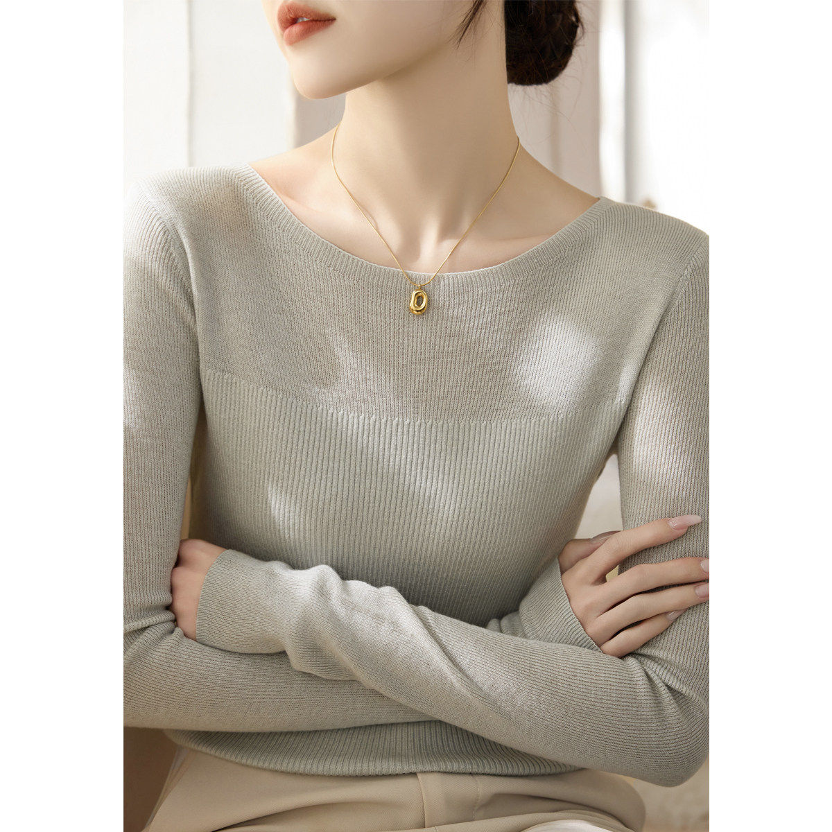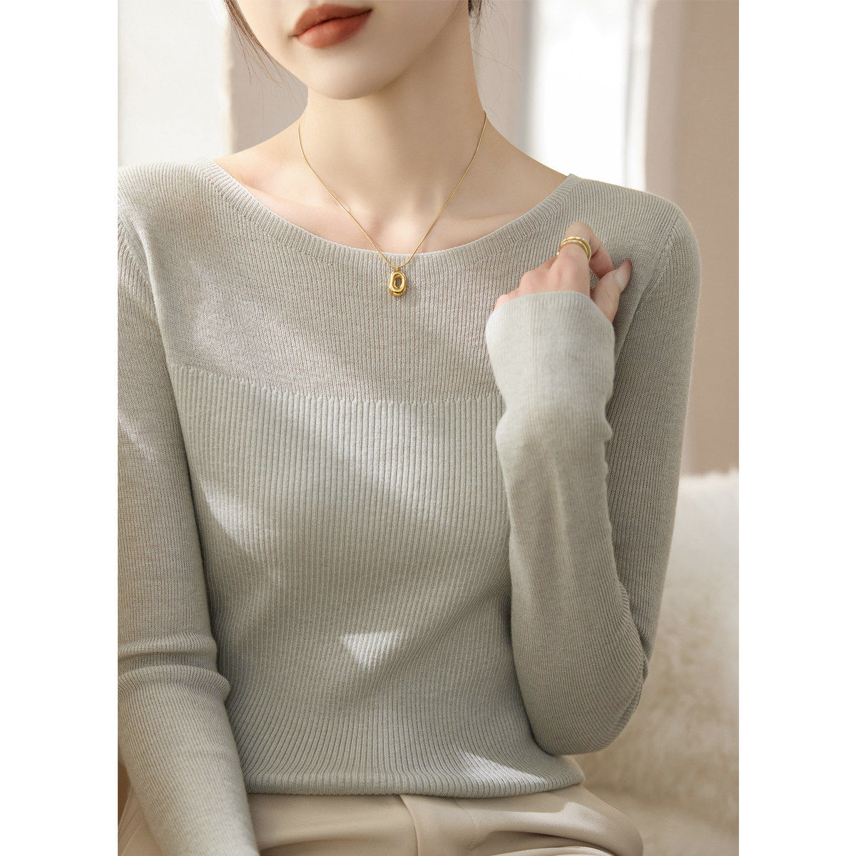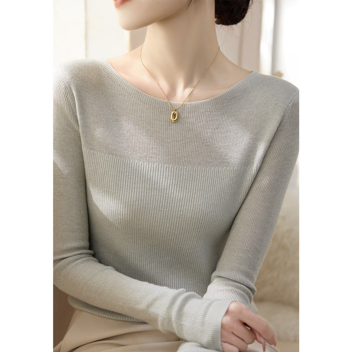 高级内搭针织打底衫毛衣女装秋冬2025新款纯色一字肩长袖正肩上衣