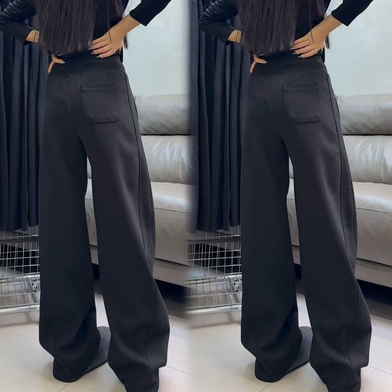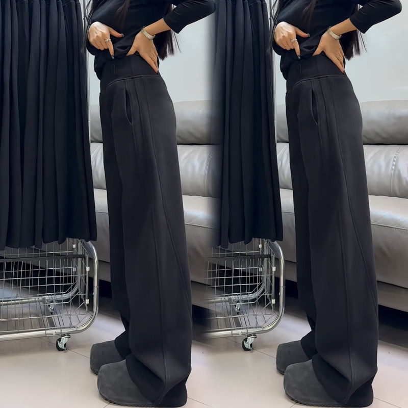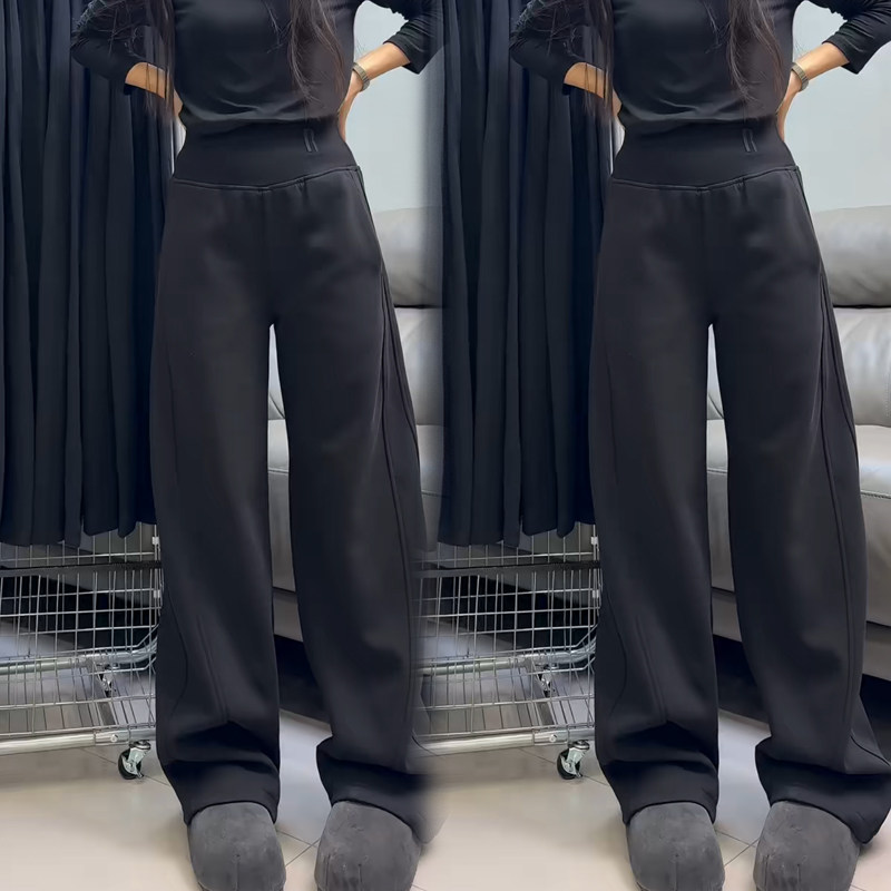 黑色休闲加绒卫裤2025秋冬欧洲站松紧高腰净版弹力宽松阔腿长裤