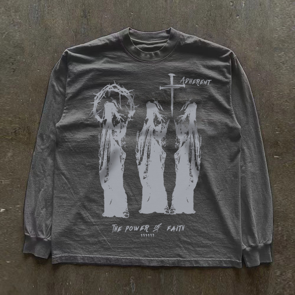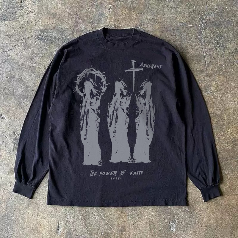 300克重磅!宽松oversize痞帅个性潮牌长袖t恤宽松版情侣上衣百搭