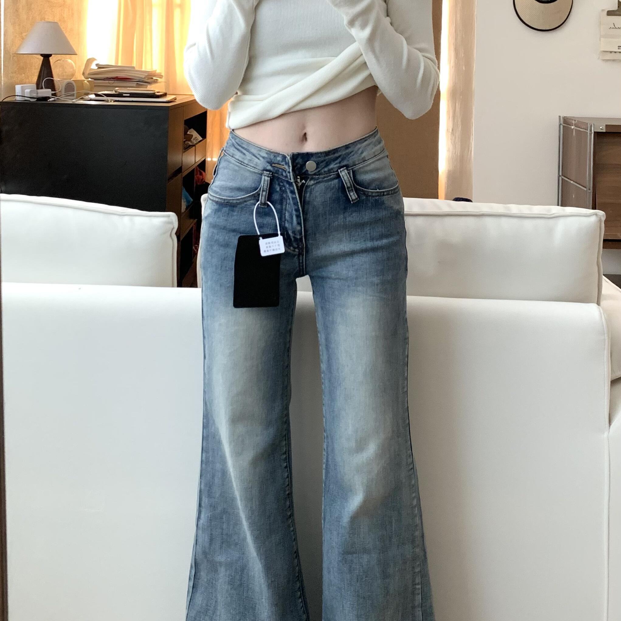 美式复古微喇牛仔裤女2025秋冬新款宽松显瘦直筒阔腿喇叭拖地裤子
