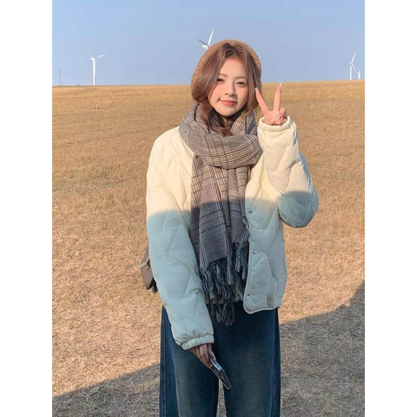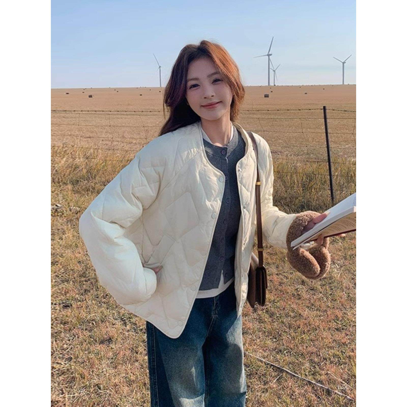 首页> 女装> LILY MOST菱格轻薄羽绒服女短款2025冬季新款圆领米白色90白鸭绒