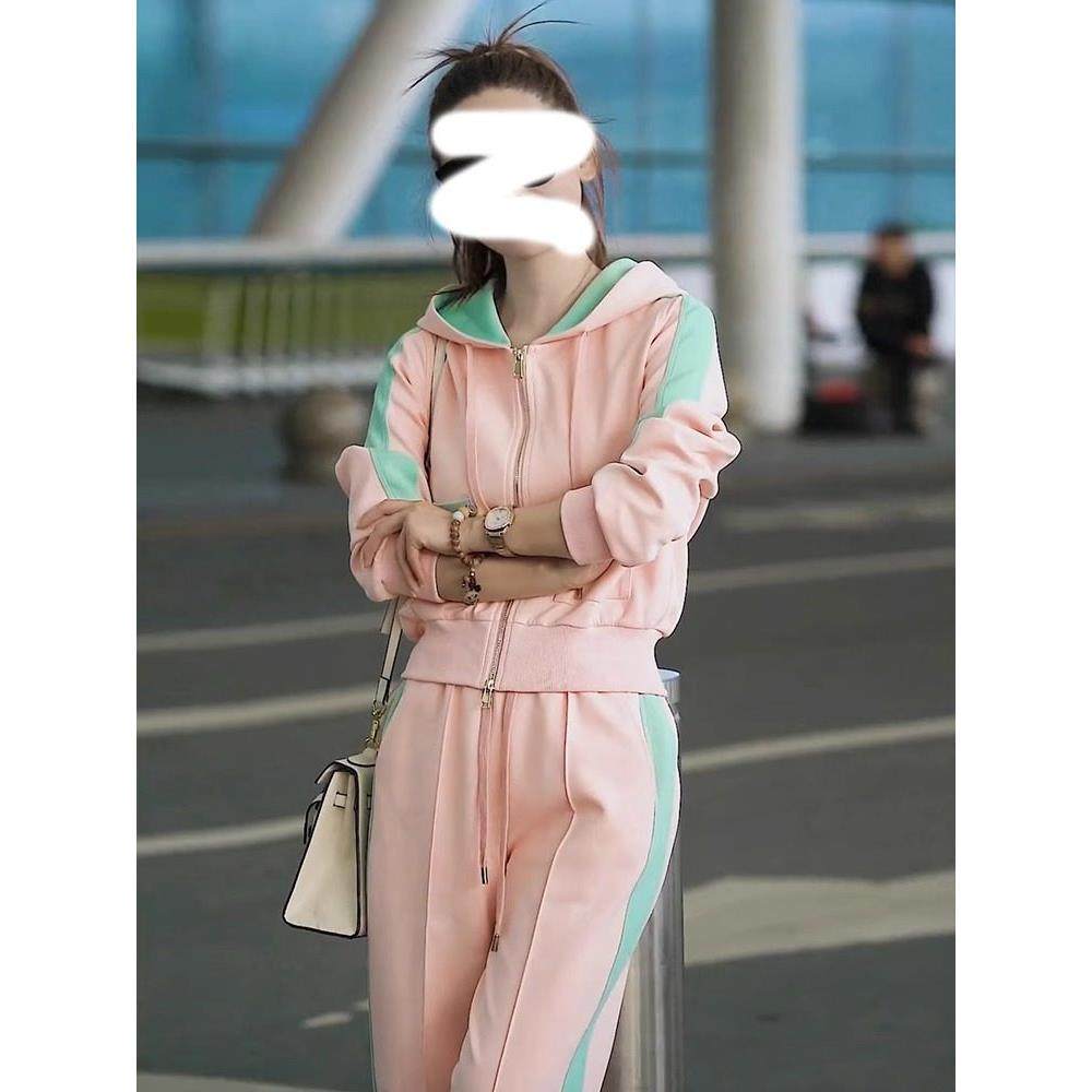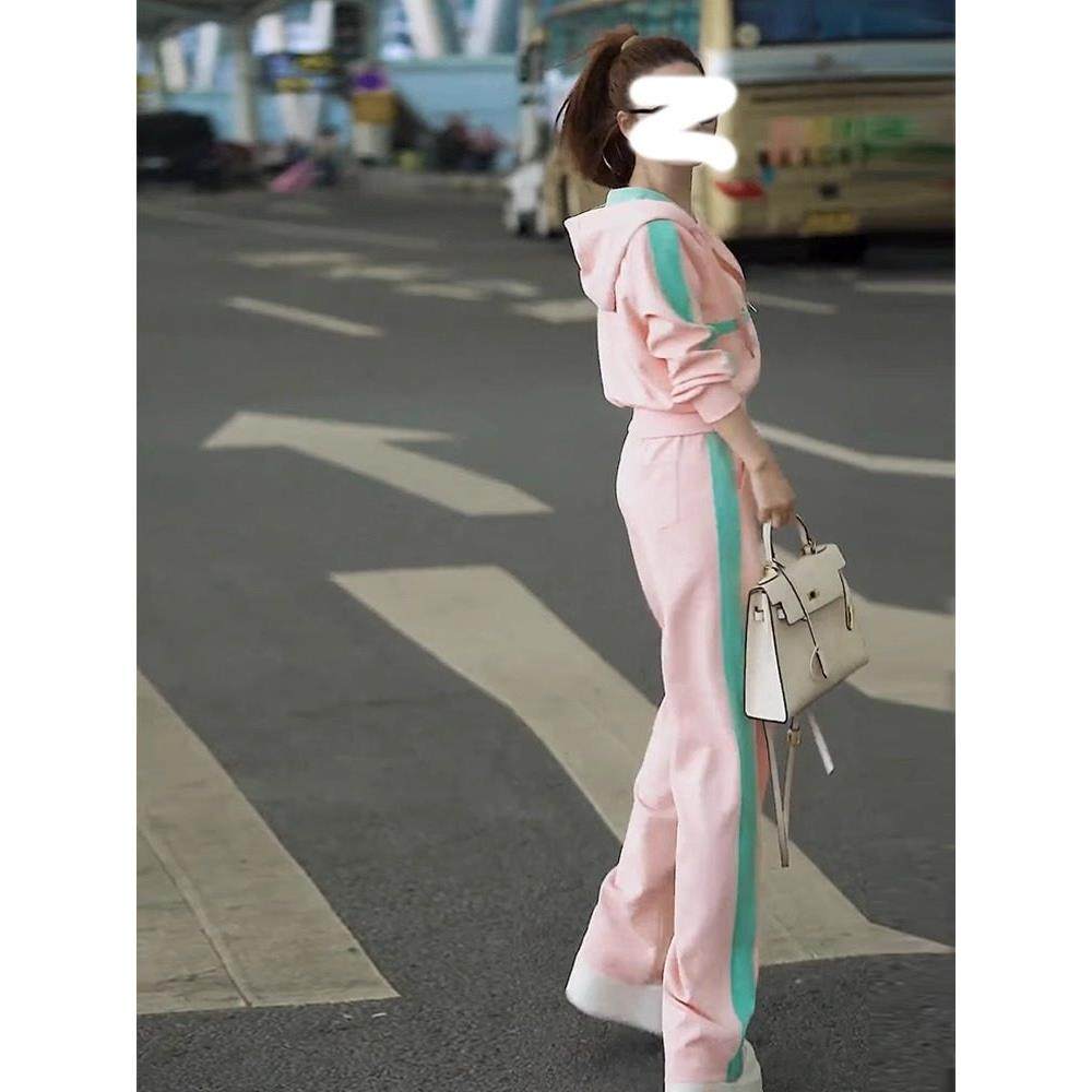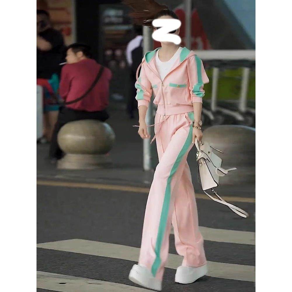 首页> 女装> Supdorx美丽休闲运动套装女性秋季风格粉色运动衫阔腿裤两件套时