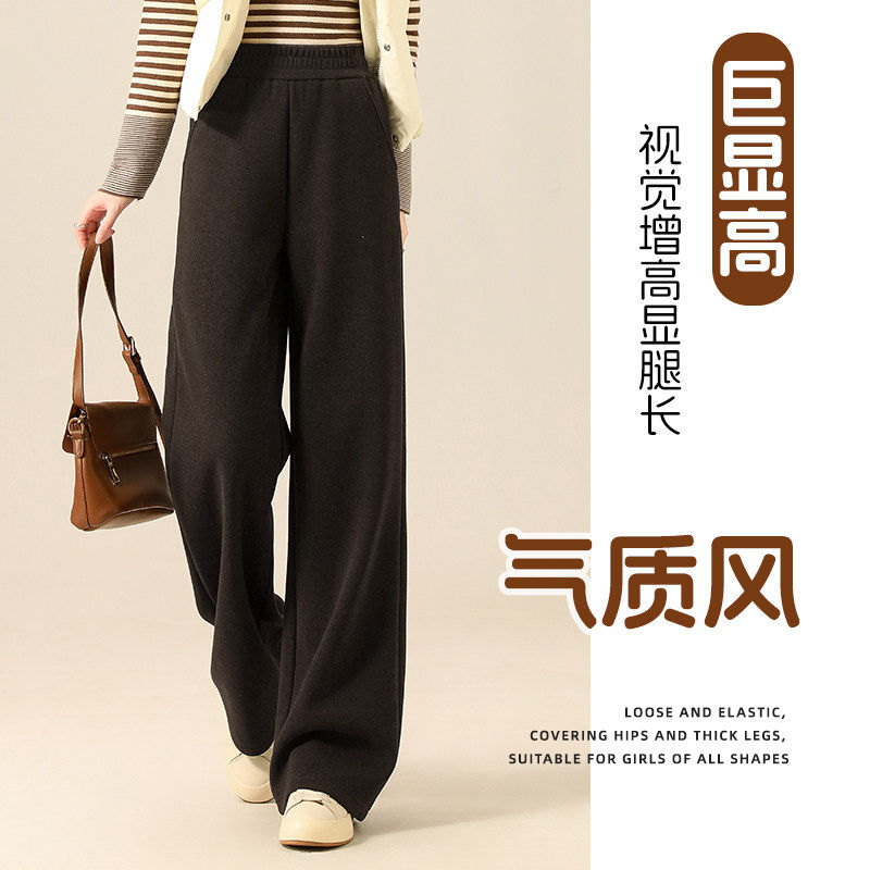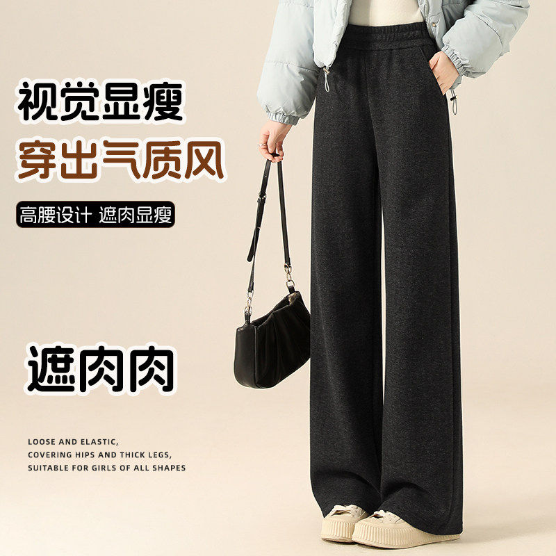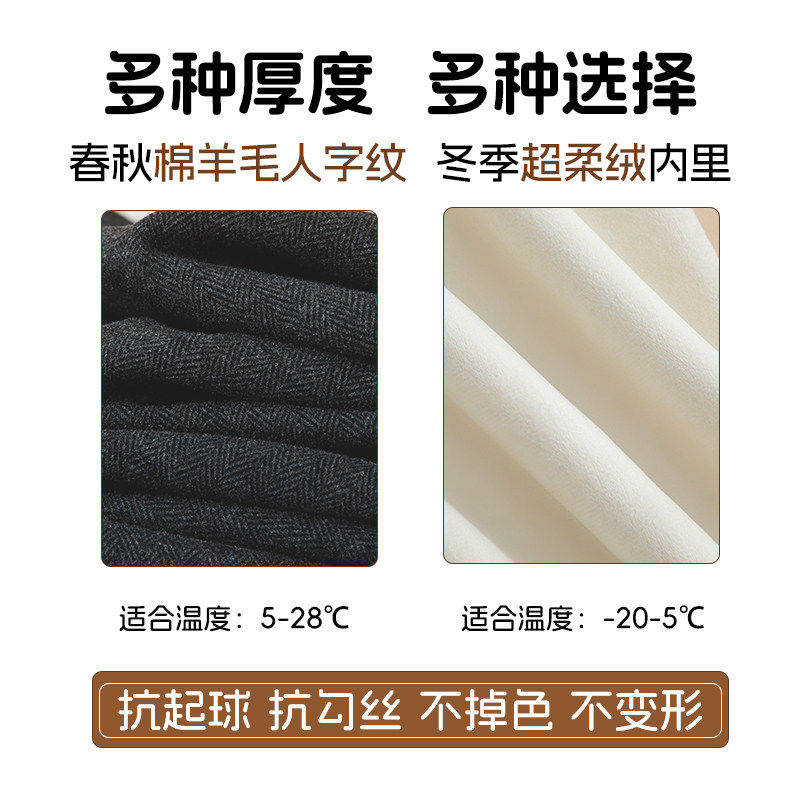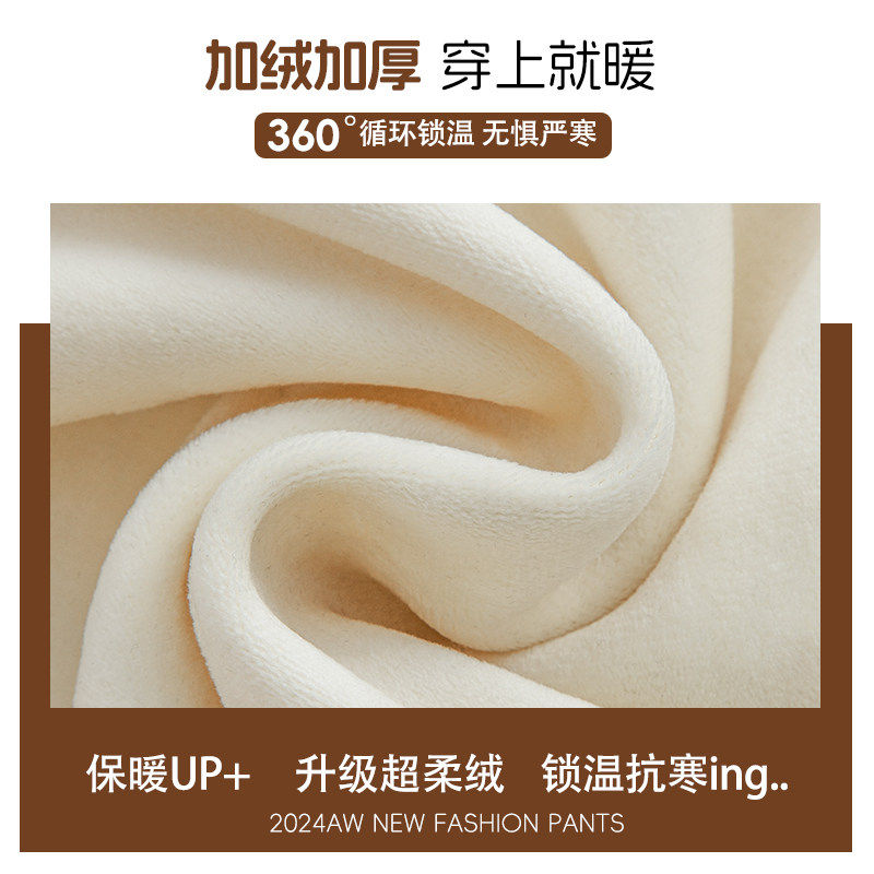 秋冬加厚加绒窄版阔腿裤女小个子高腰显瘦羊毛人字纹休闲 直筒裤