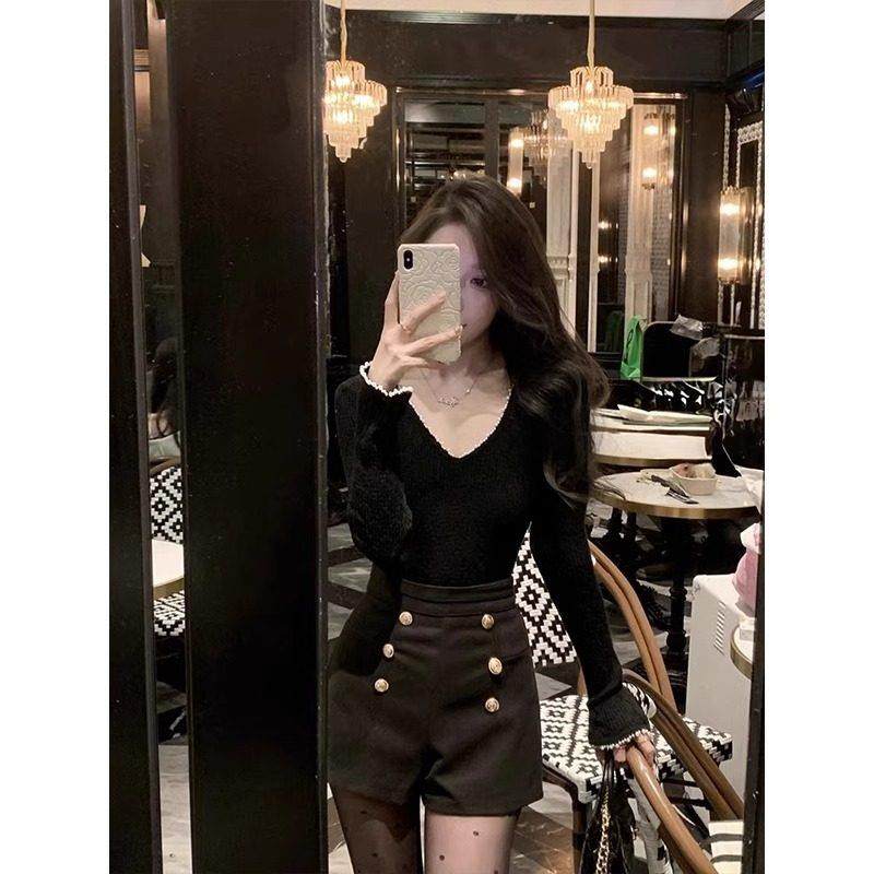 首页> 女装> 白色针织衫女秋季短款修身毛衣设计感冬季流行风格钉珠低领打底衫