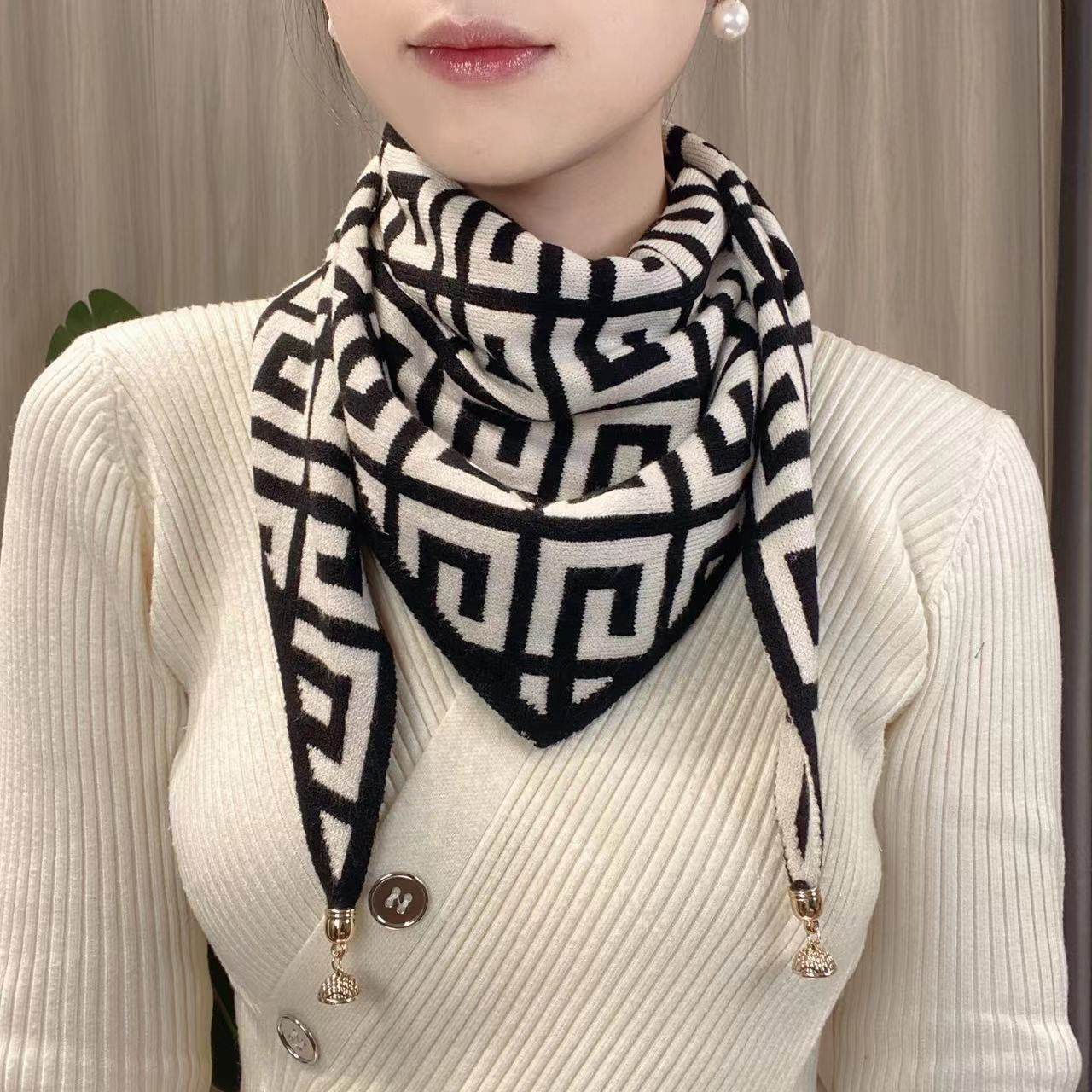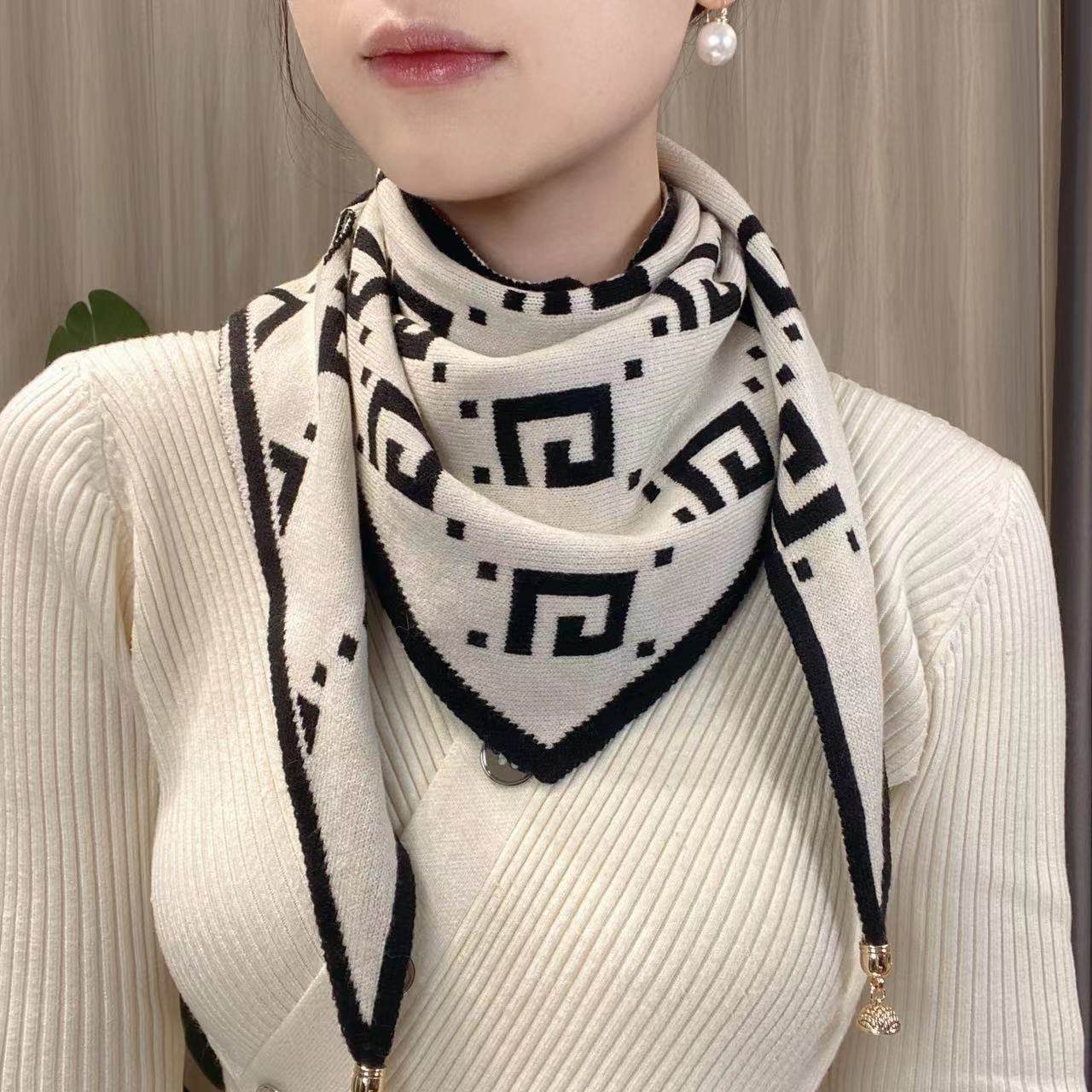 20正版精选针织磁扣三角巾多功能双色百搭针织保暖护颈洋气小一朵