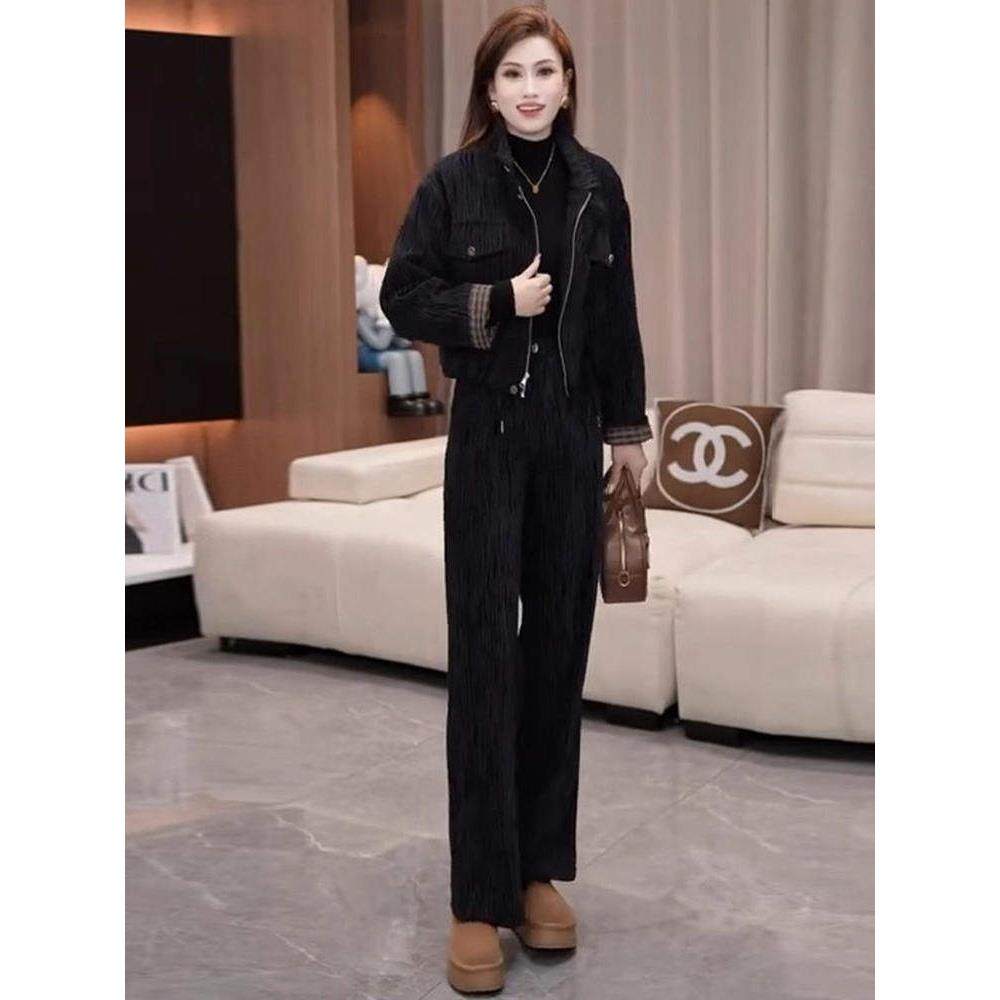 首页> 女装> 香港代购时尚雪尼尔套装女冬季显瘦夹棉加厚短款外套阔腿裤两件套