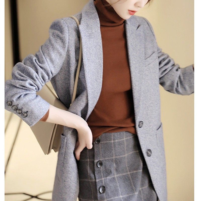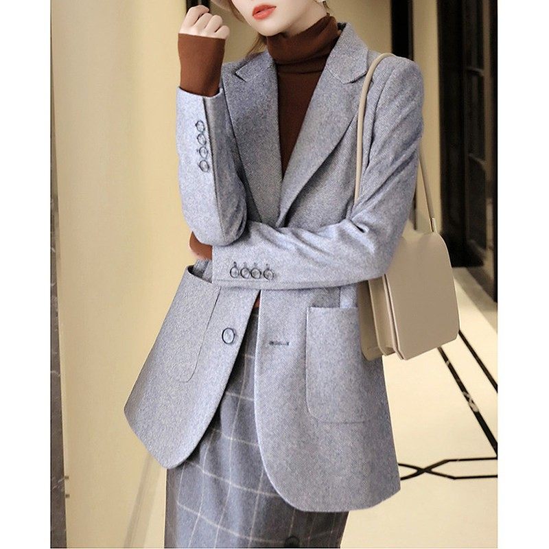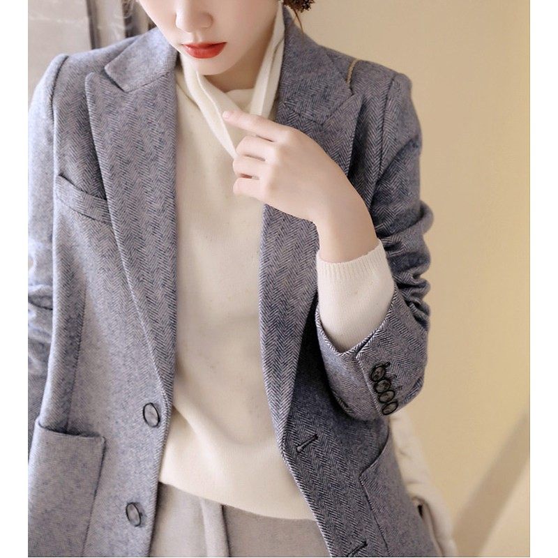 2025秋冬羊毛西装外套女休闲宽松高级感夹棉保暖毛呢西服显瘦上衣