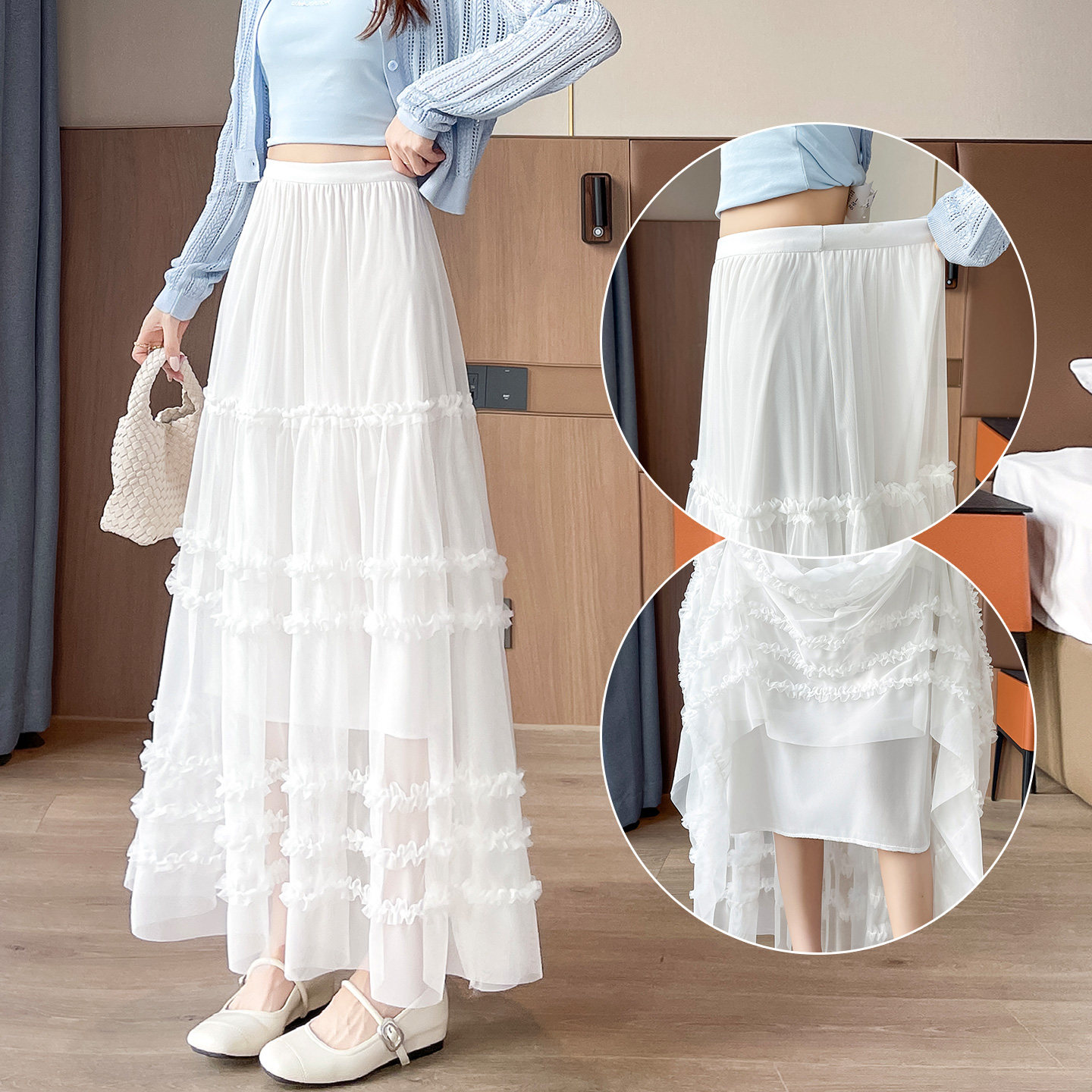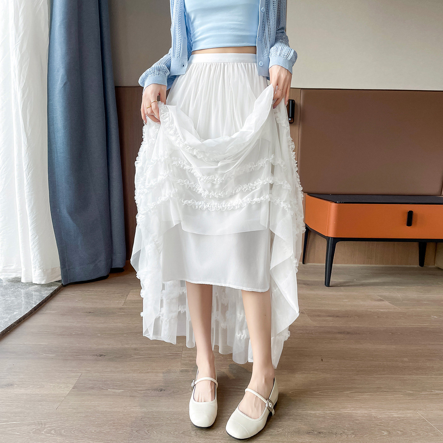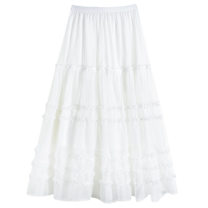 巨好看木耳边网纱蛋糕裙女2026春季新款高腰显瘦大摆长裙仙女纱裙