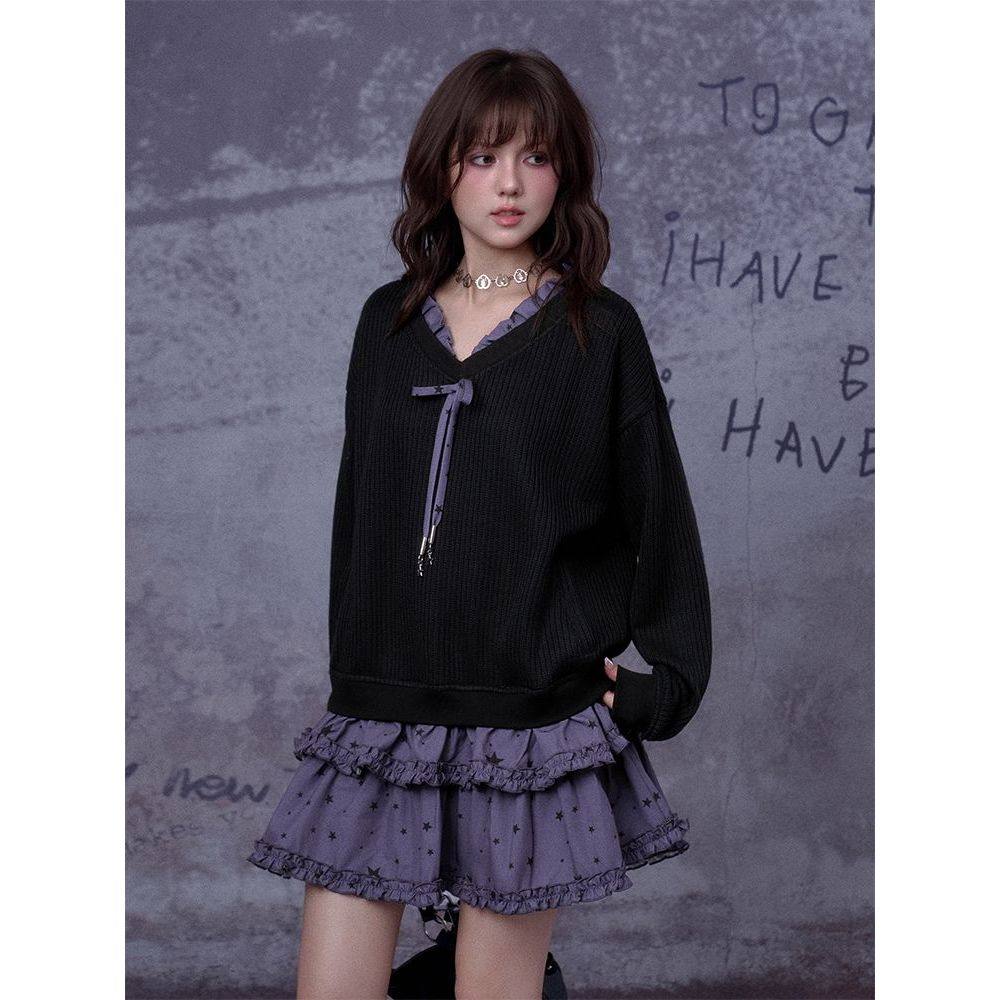 黑化次元 秋冬新款日系哥特风万圣节小魔女黑紫针织拼接连衣裙子