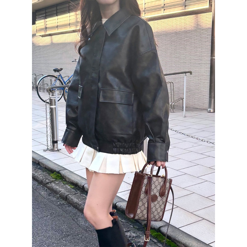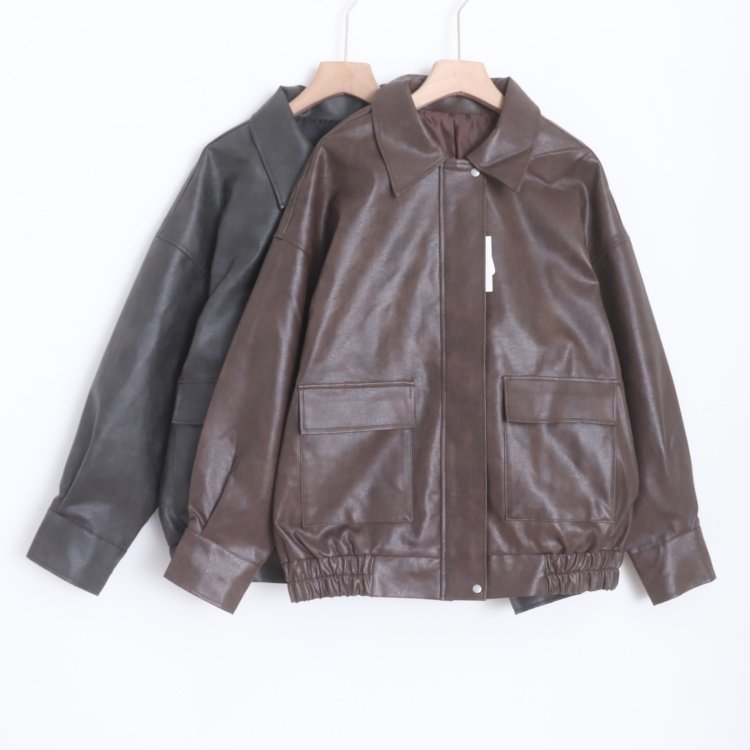 首页> 女装> D16064日单新款GL客供料翻边领拉链宽松好搭配女休闲PU皮衣外套
