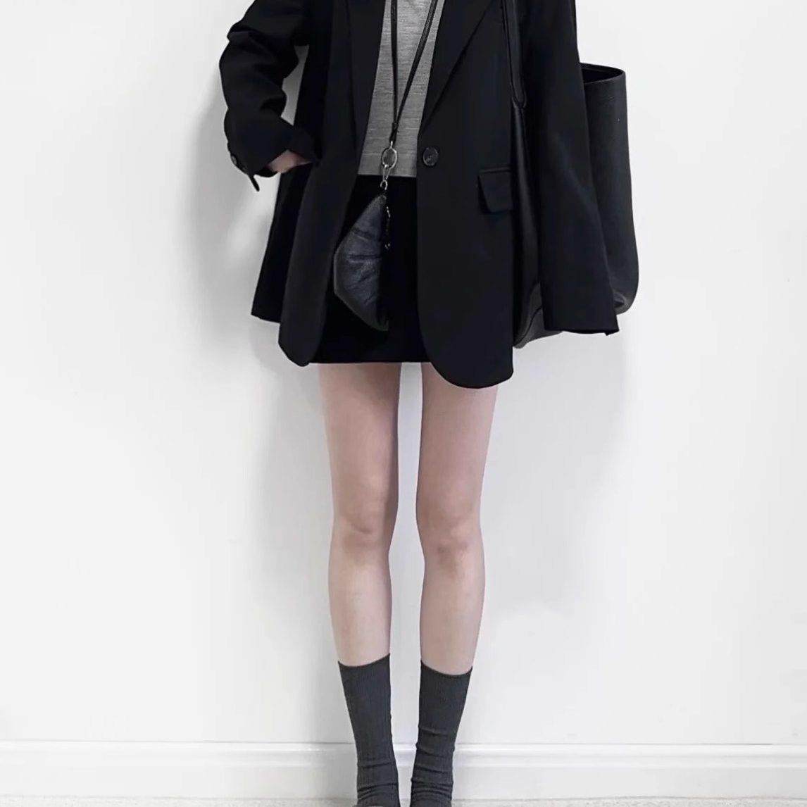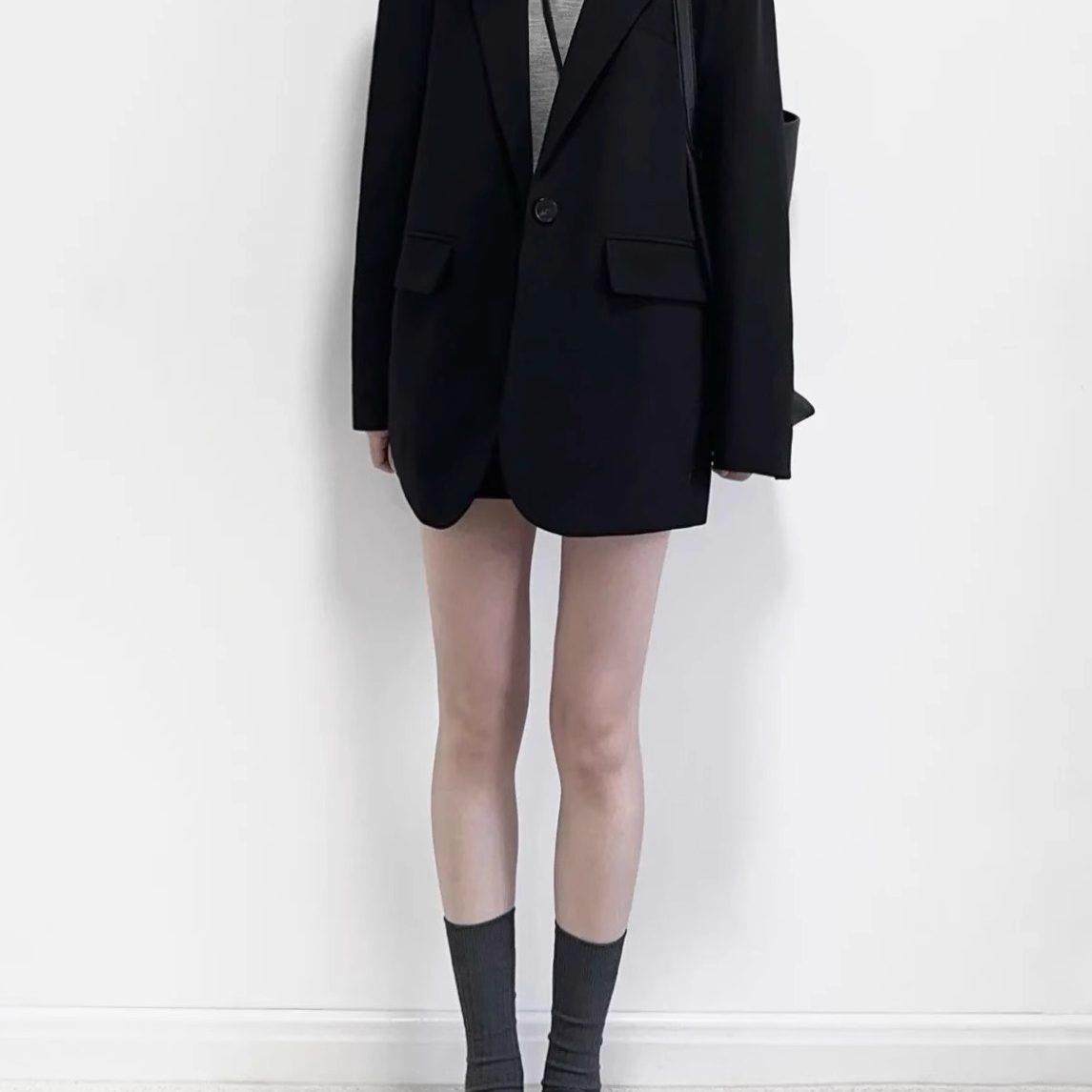 新品香港春秋新款高级感黑色西装外套女士韩版小个子oversize西服