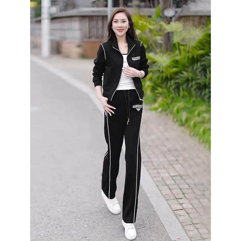 时尚运动套装女春秋新款洋气休闲立领开衫卫衣阔脚裤显瘦两件套潮