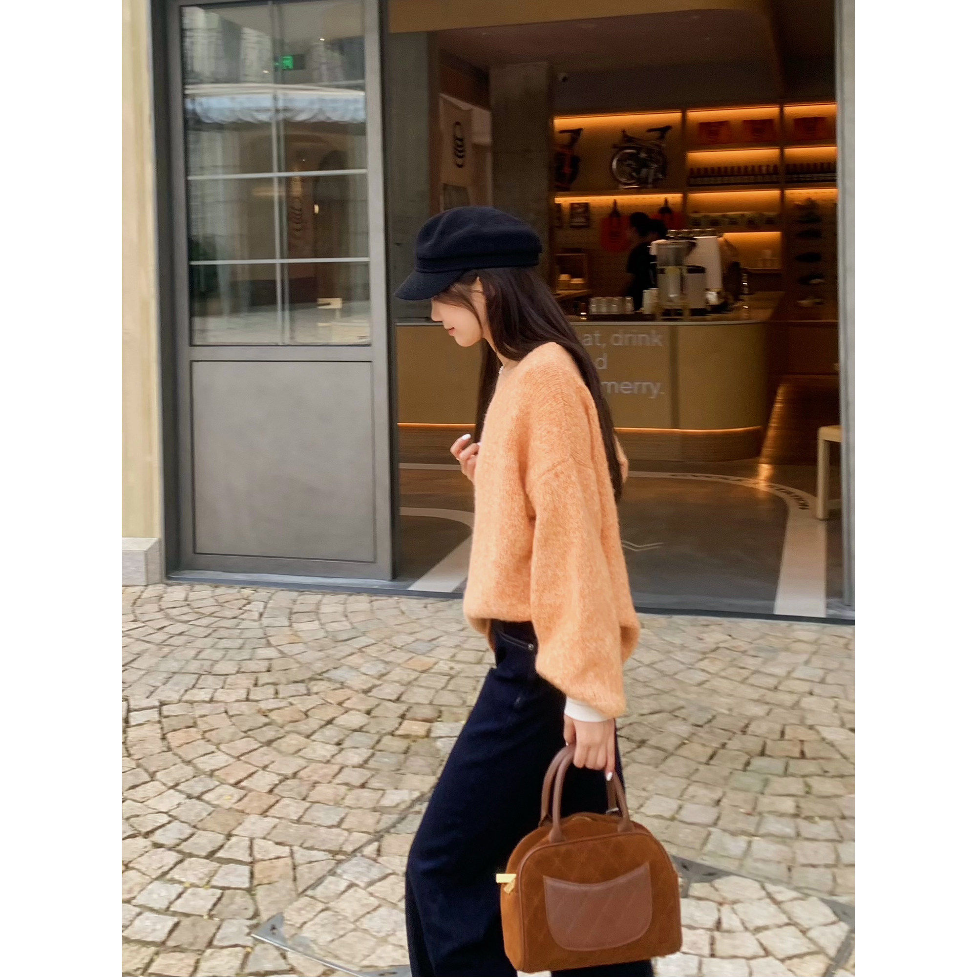 切糕自制小个子秋冬新款上衣女慵懒好看粉色宽松毛衫紫色毛衣