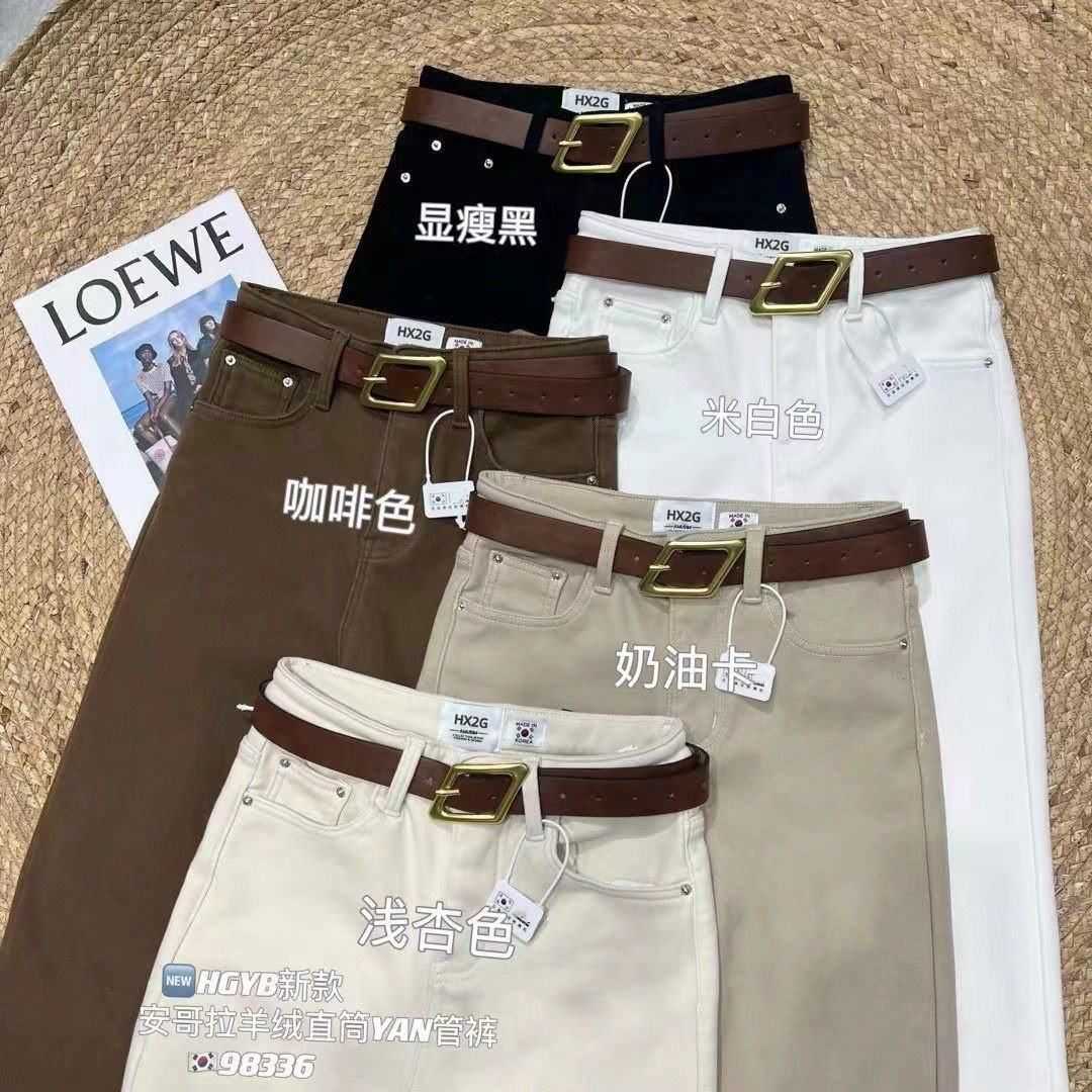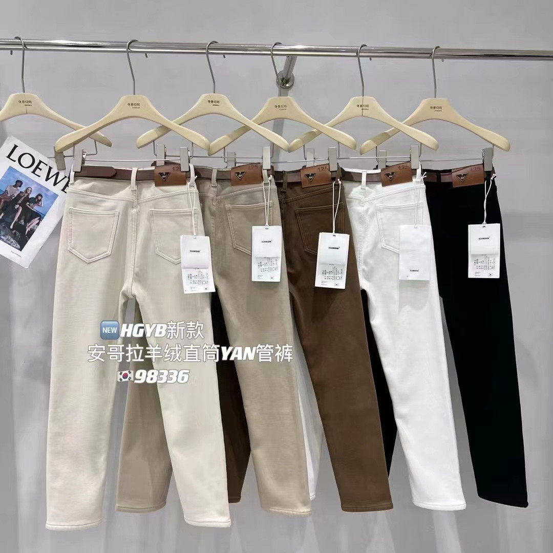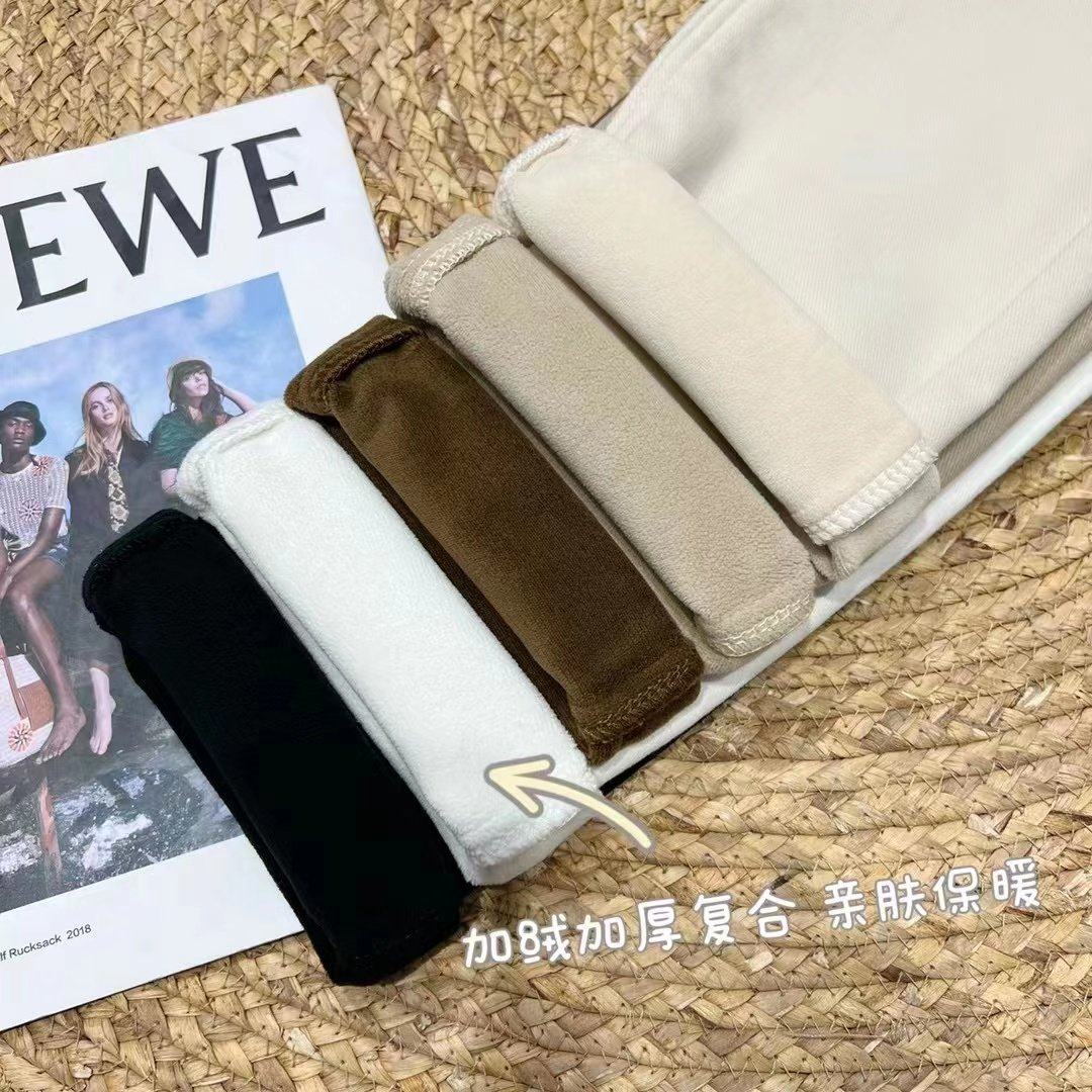 HX2G加绒加厚牛仔裤女2025冬季新款修身显瘦高腰弹力直筒烟管裤子