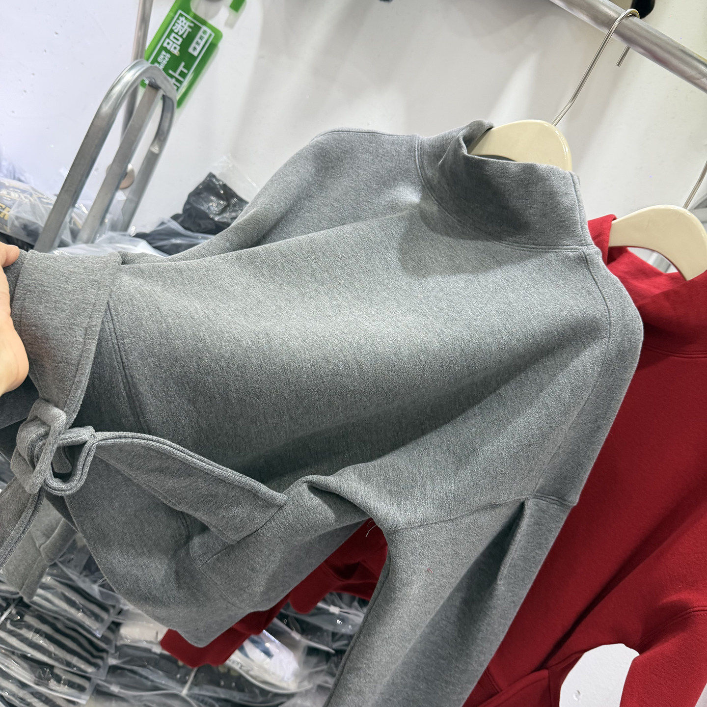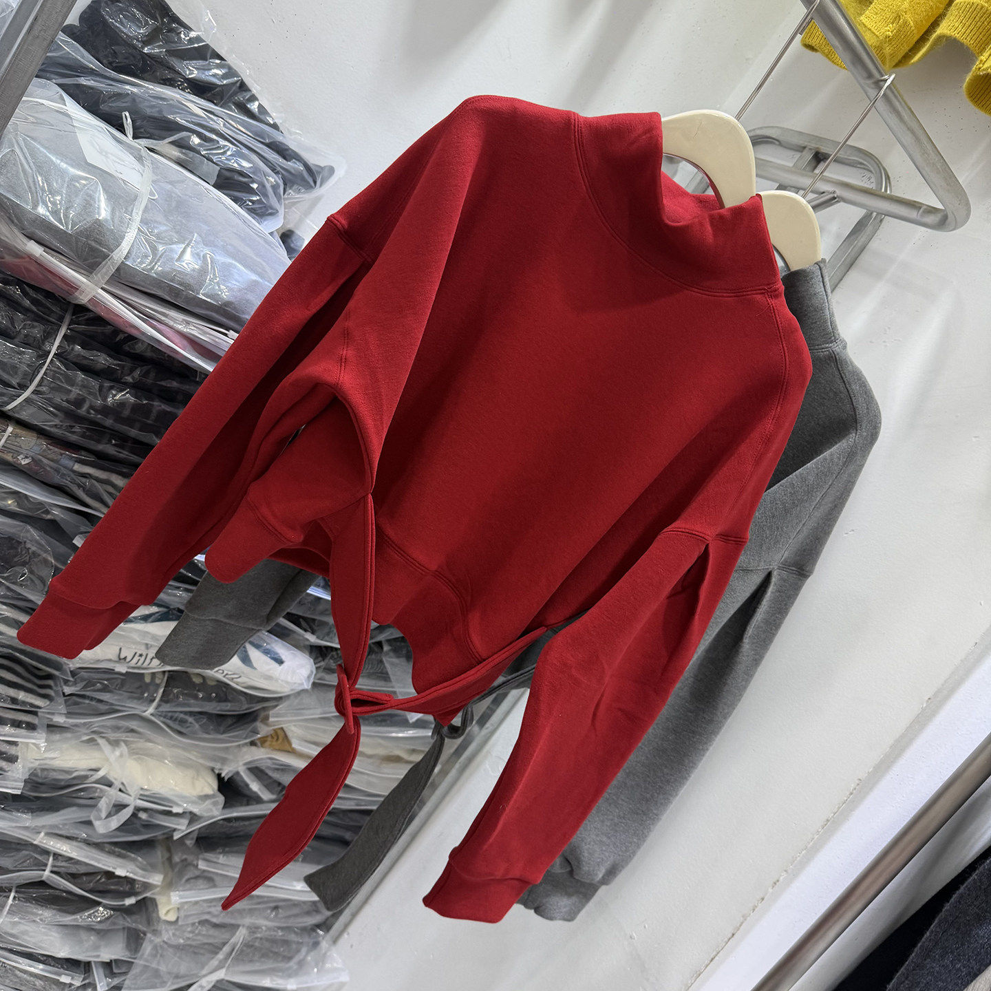 韩版立领加绒卫衣女秋冬新款红色宽松百搭腰带短款气质显瘦上衣潮