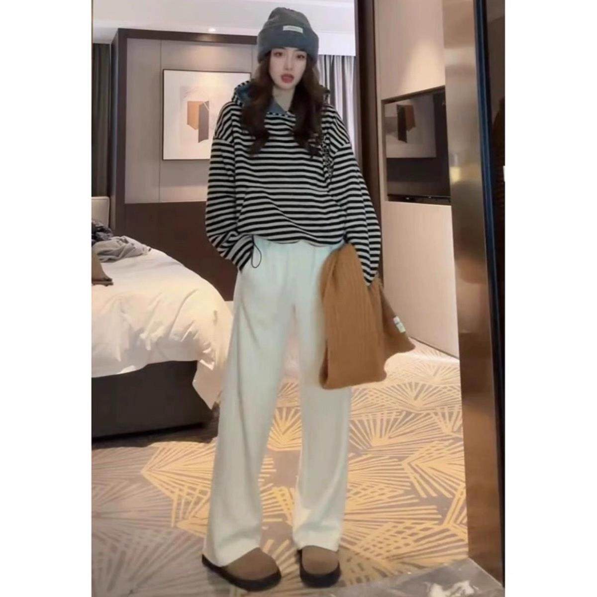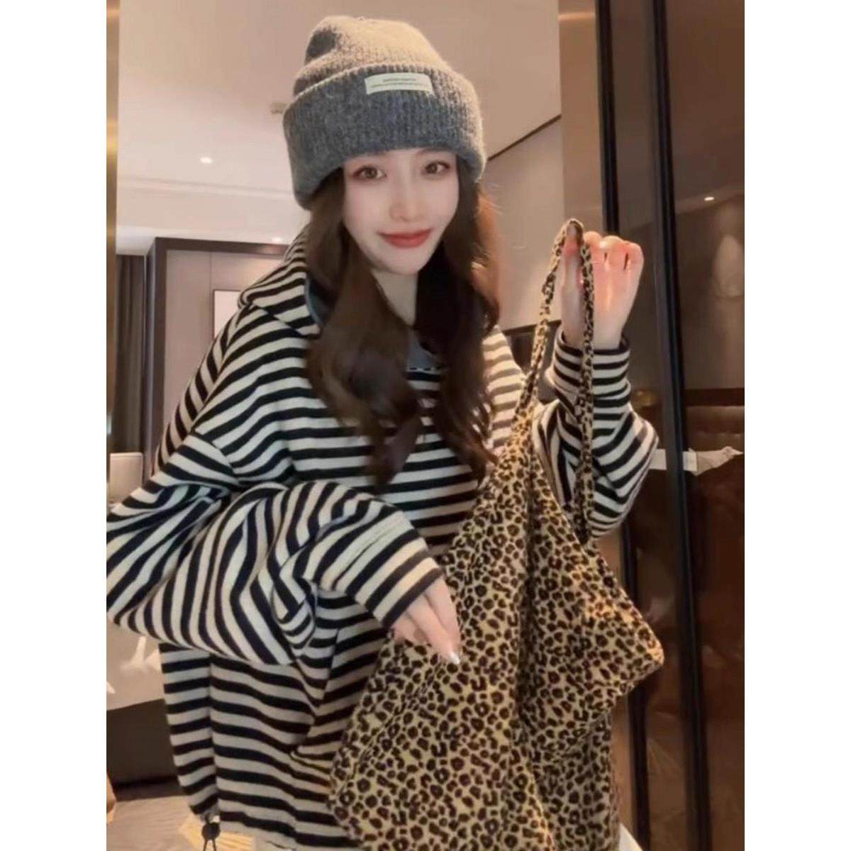 首页> 女装> 条纹连帽卫衣女春秋2025新款时尚百搭宽松慵懒小个子短款长袖上衣