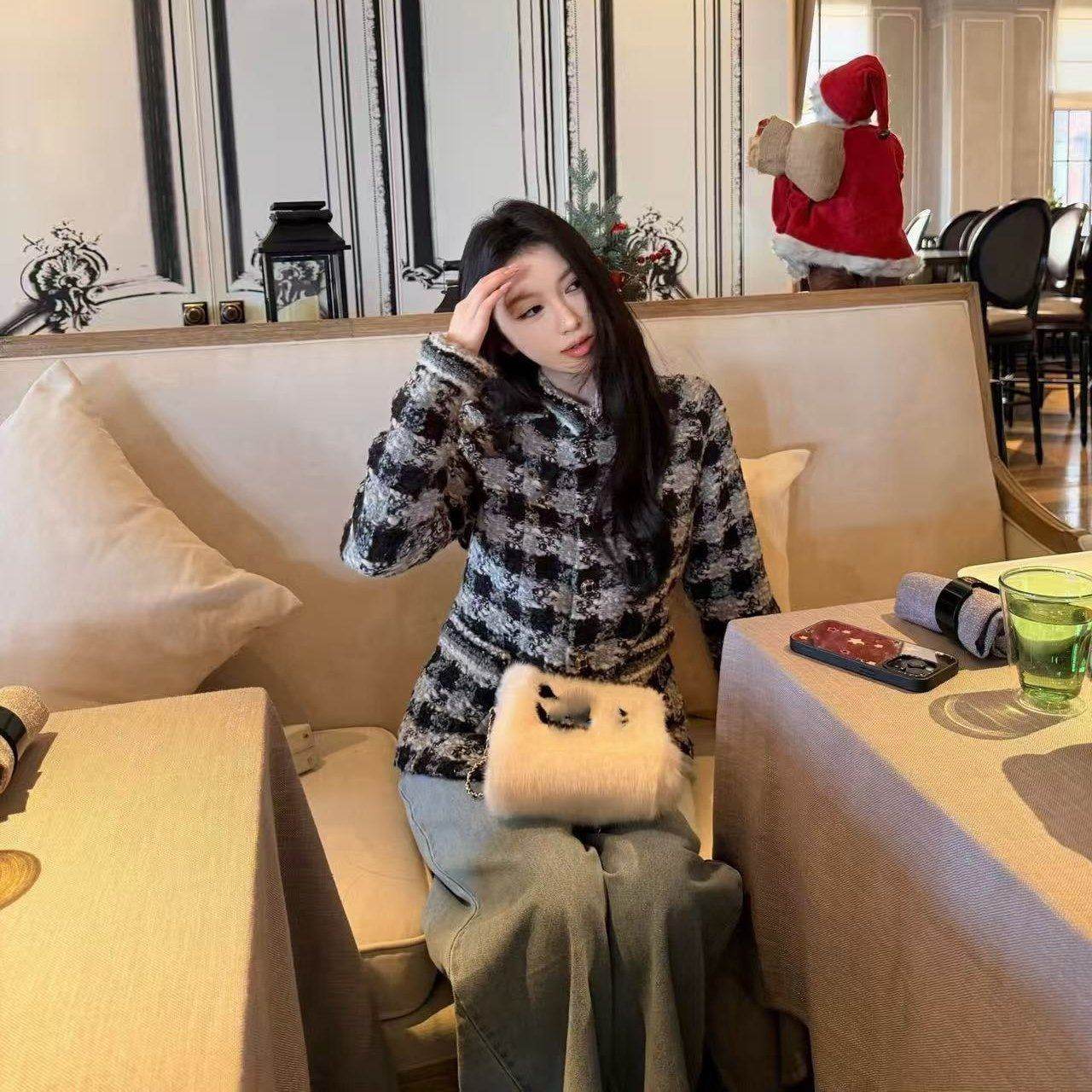 好漂亮好漂亮格纹小香风外套女2025年冬季新款短上衣名媛气质时尚