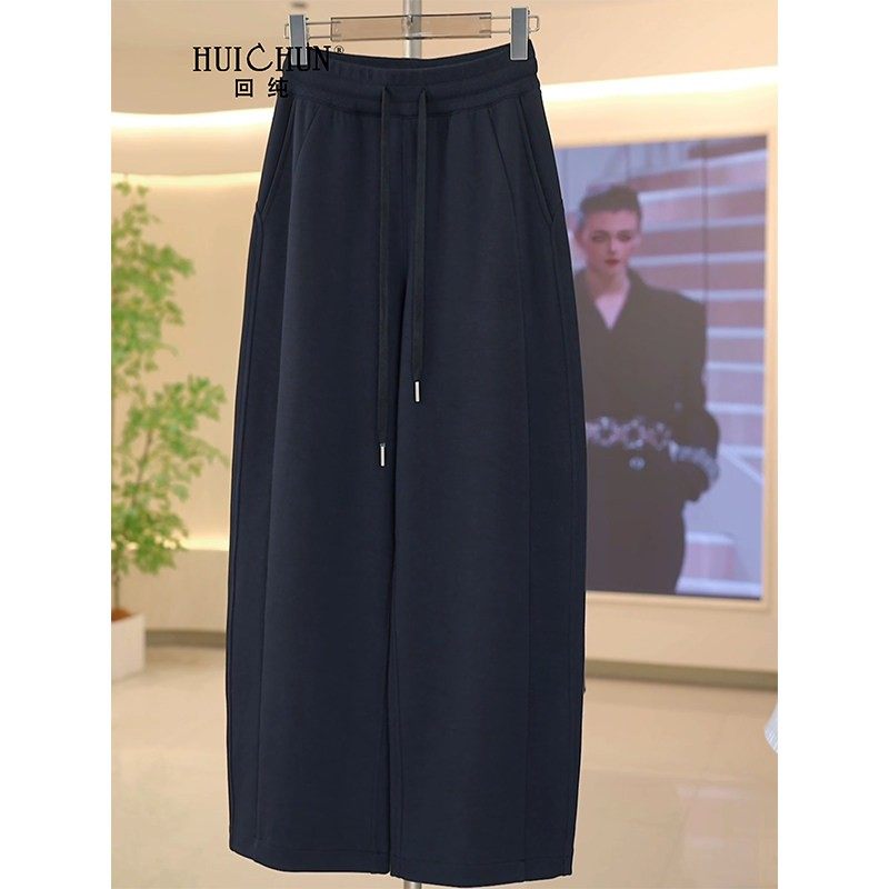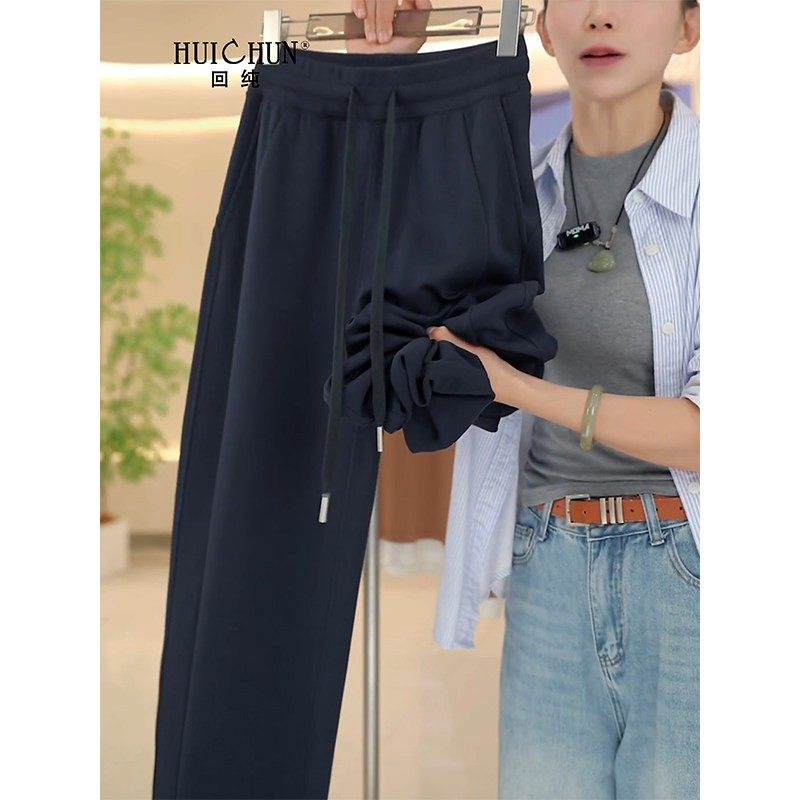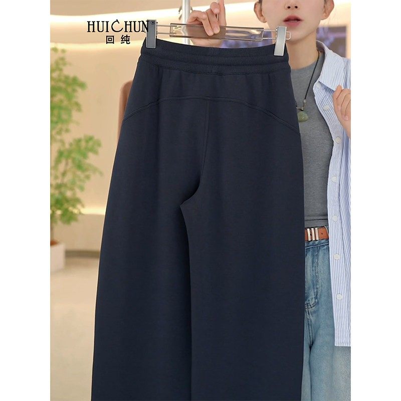 品牌高腰休闲直筒阔腿裤女大码胖mm加绒加厚运动纯棉卫裤宽松秋冬