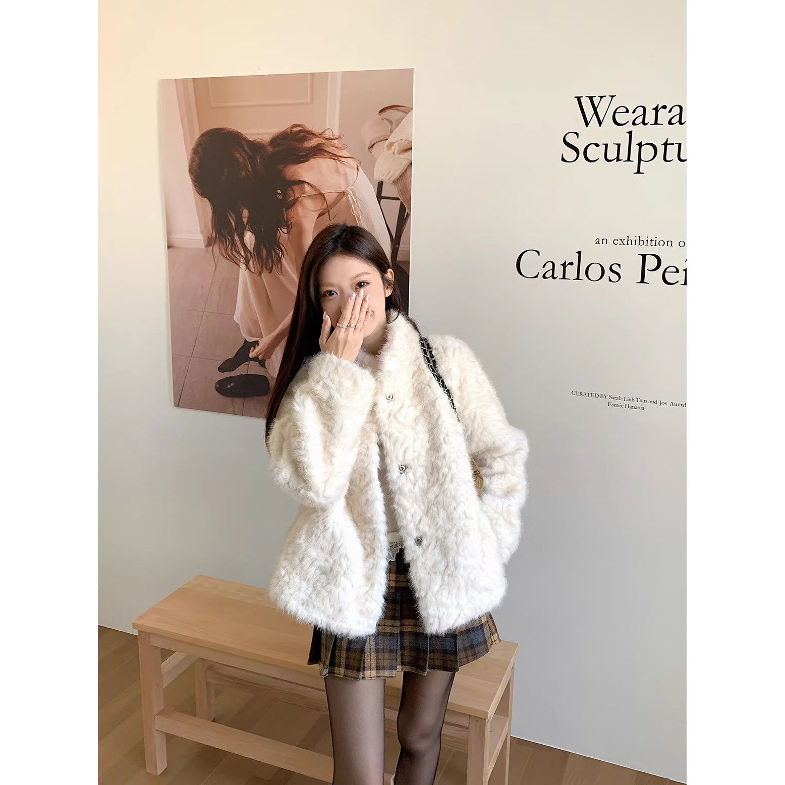 可可里自制~仿皮草加厚保暖时尚外套秋冬立领宽松毛毛开衫上衣女