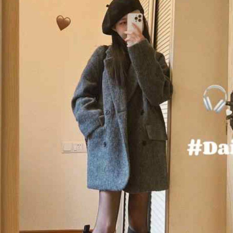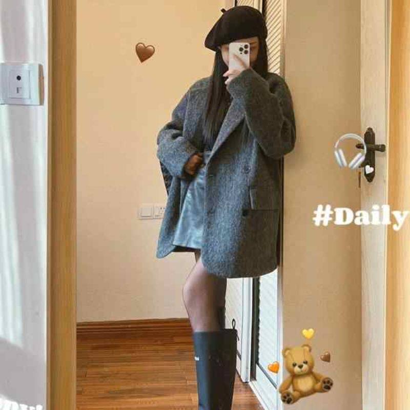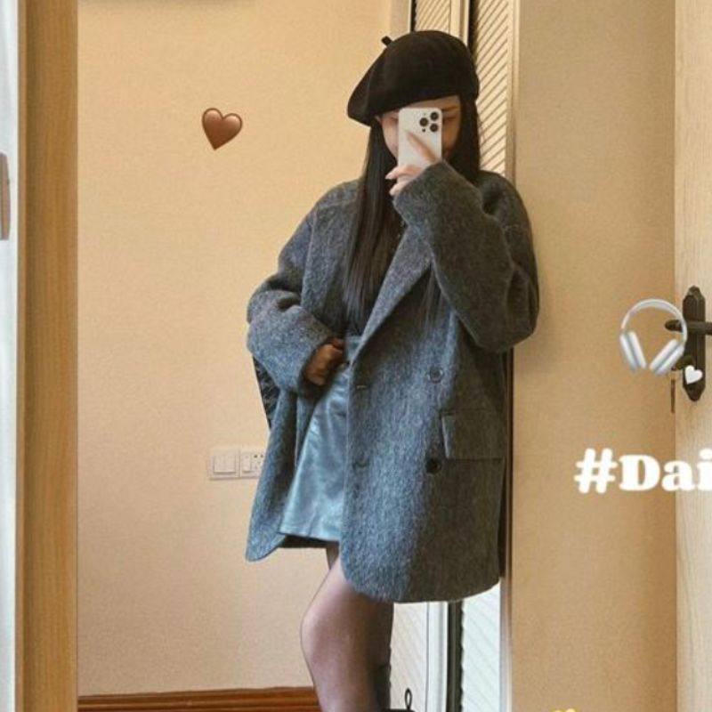加厚羊毛大衣新款秋冬女高级感小个子灰色呢子显站好百搭西装外套