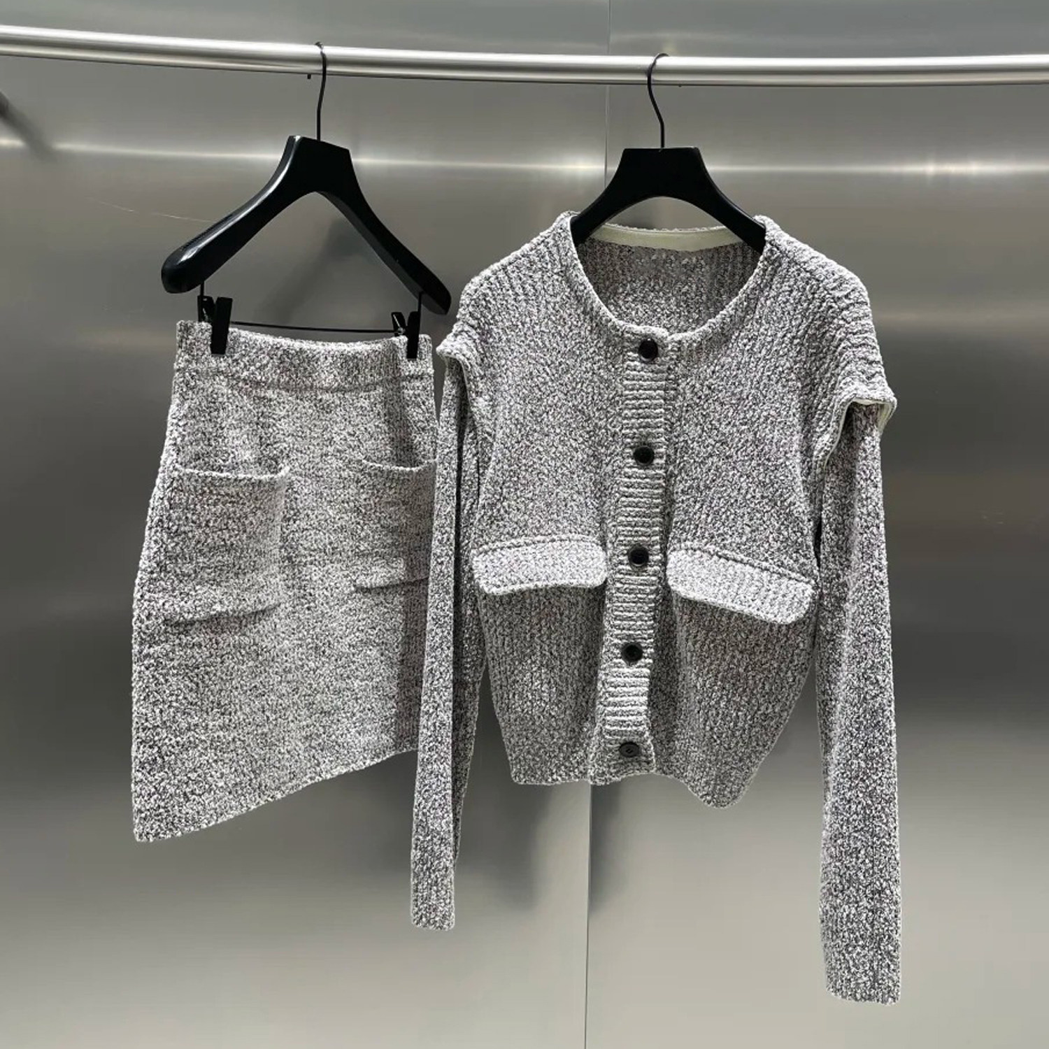 首页> 女装> 深圳南油高端女装2026春季新款小香风轻奢针织上衣搭半身裙套装女