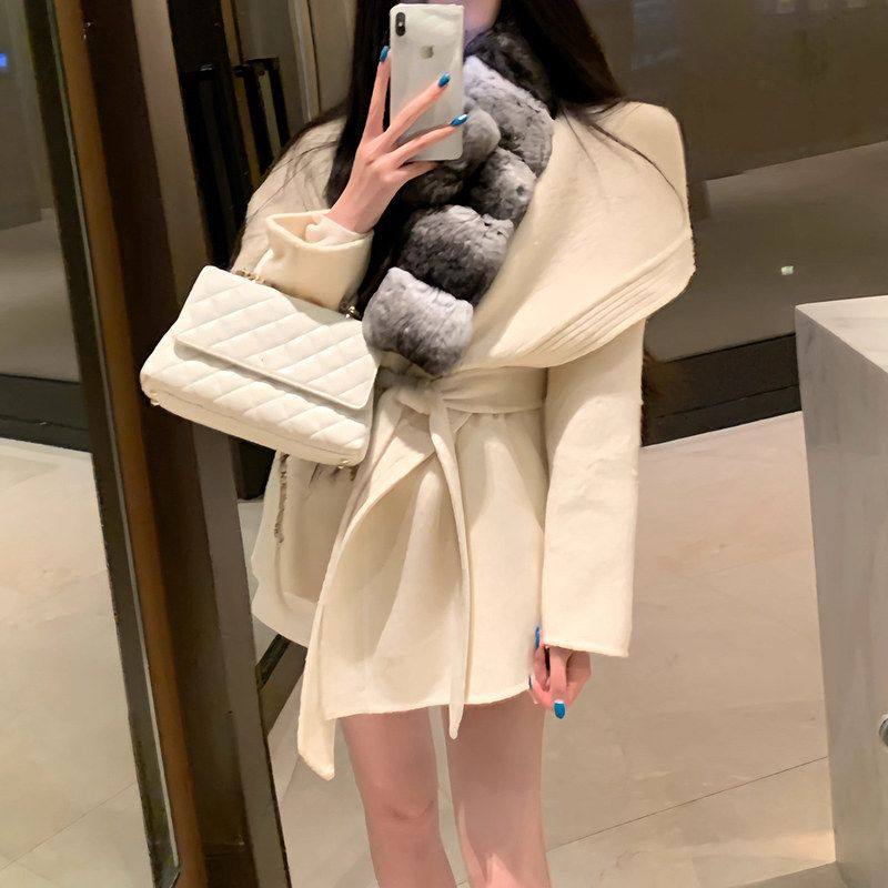 【杜桑大衣】高品质羊毛双面呢气质大衣冬季大翻领系带质感外套