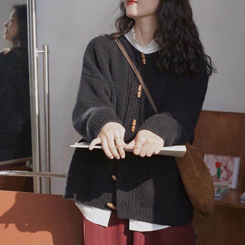 首页> 女装> 针织开衫外套女秋冬2025新款韩版宽松复古慵懒风短款外穿圆领毛衣