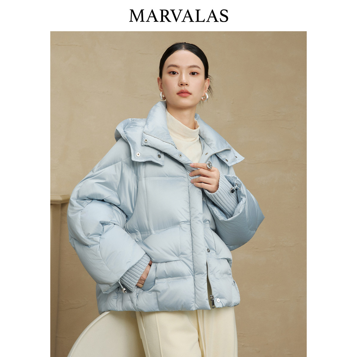 【粉丝专属】曼德诗短款羽绒服2025冬季新款时尚连帽设计面包