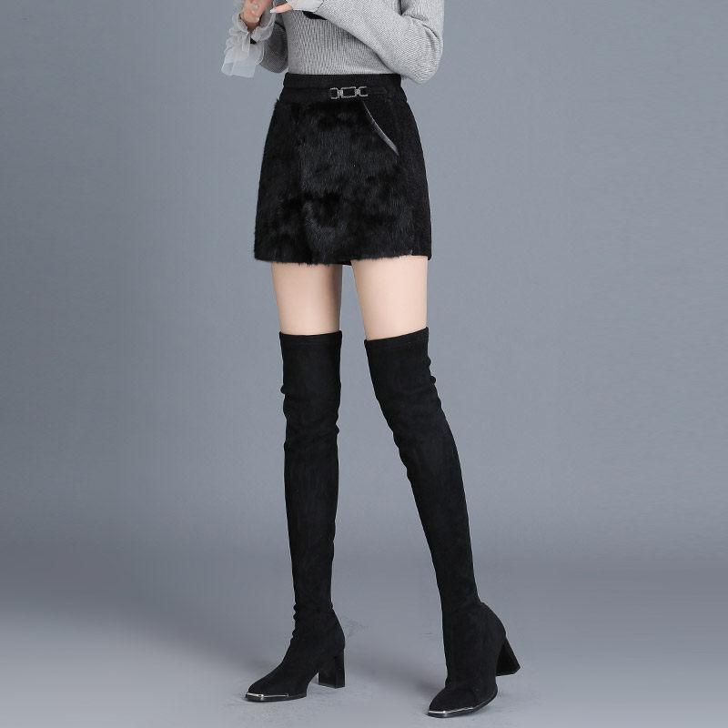 首页> 女装> 黑色拼接毛绒短裤女秋冬2025新款高腰显瘦外穿气质休闲阔腿靴裤子