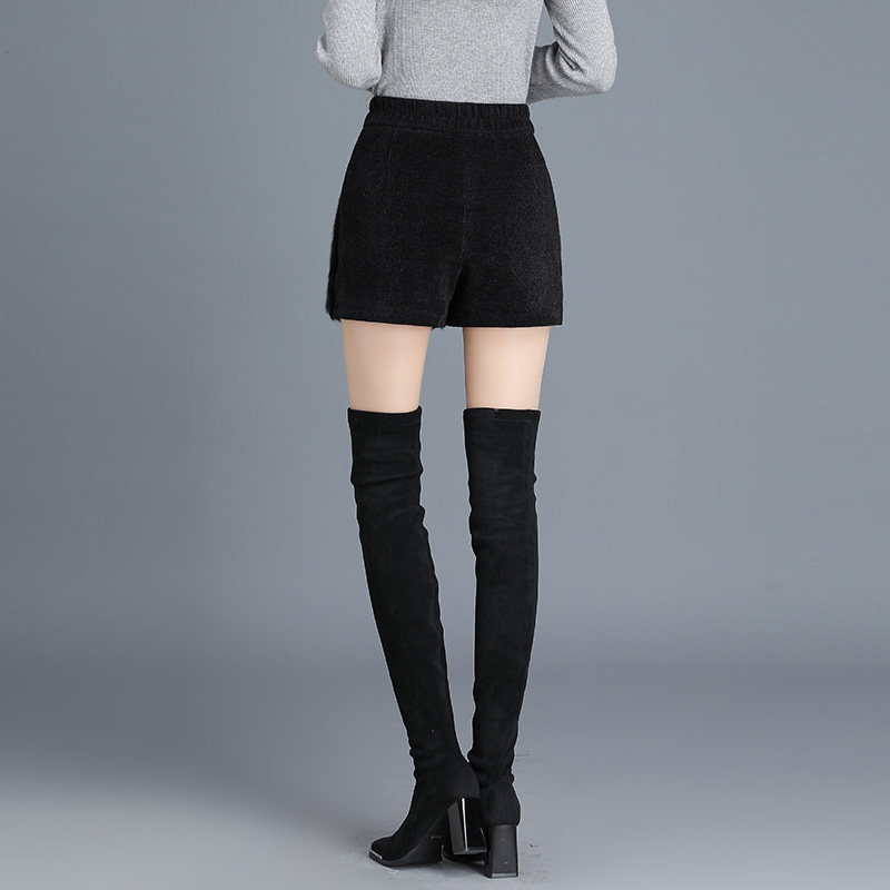 黑色拼接毛绒短裤女秋冬2025新款高腰显瘦外穿气质休闲阔腿靴裤子