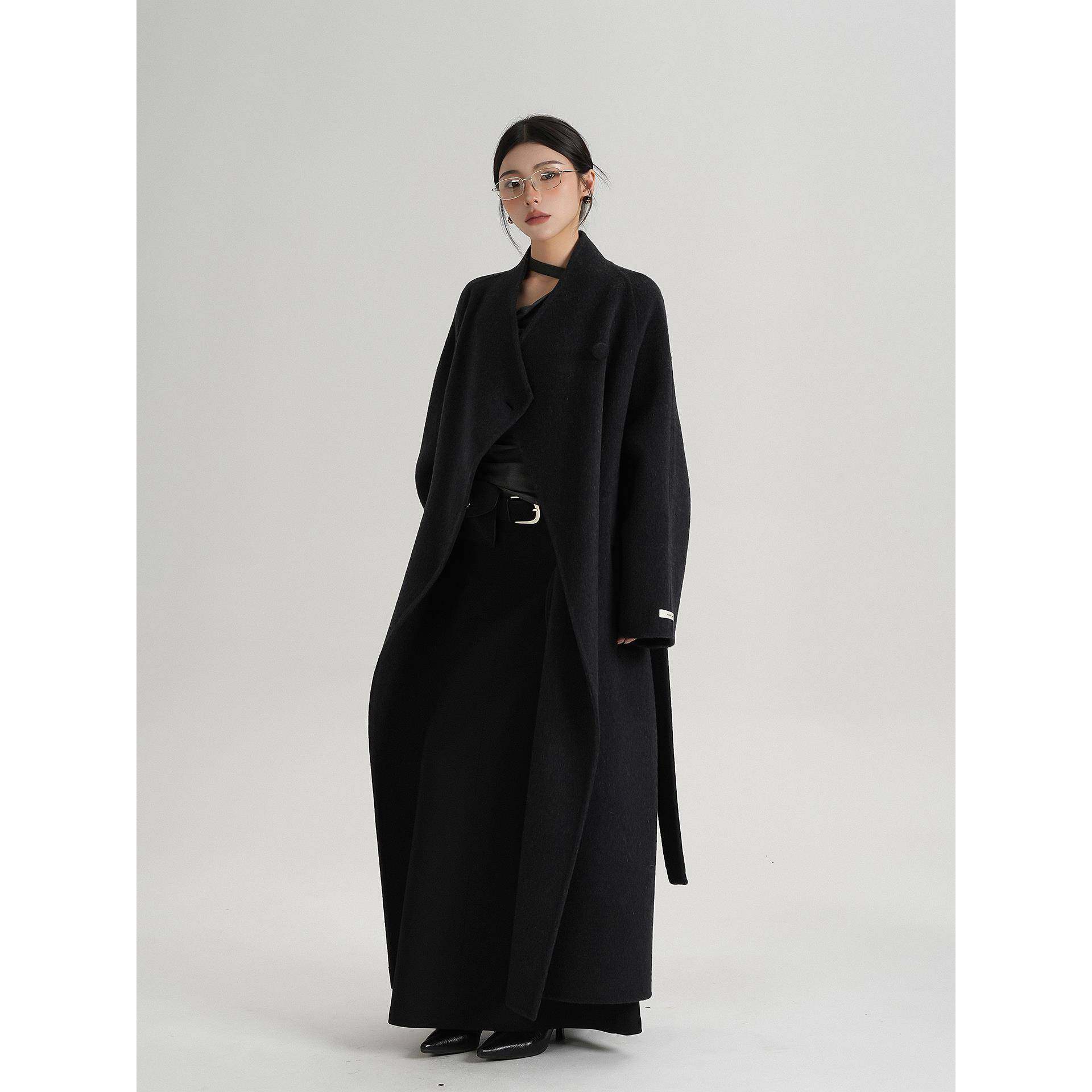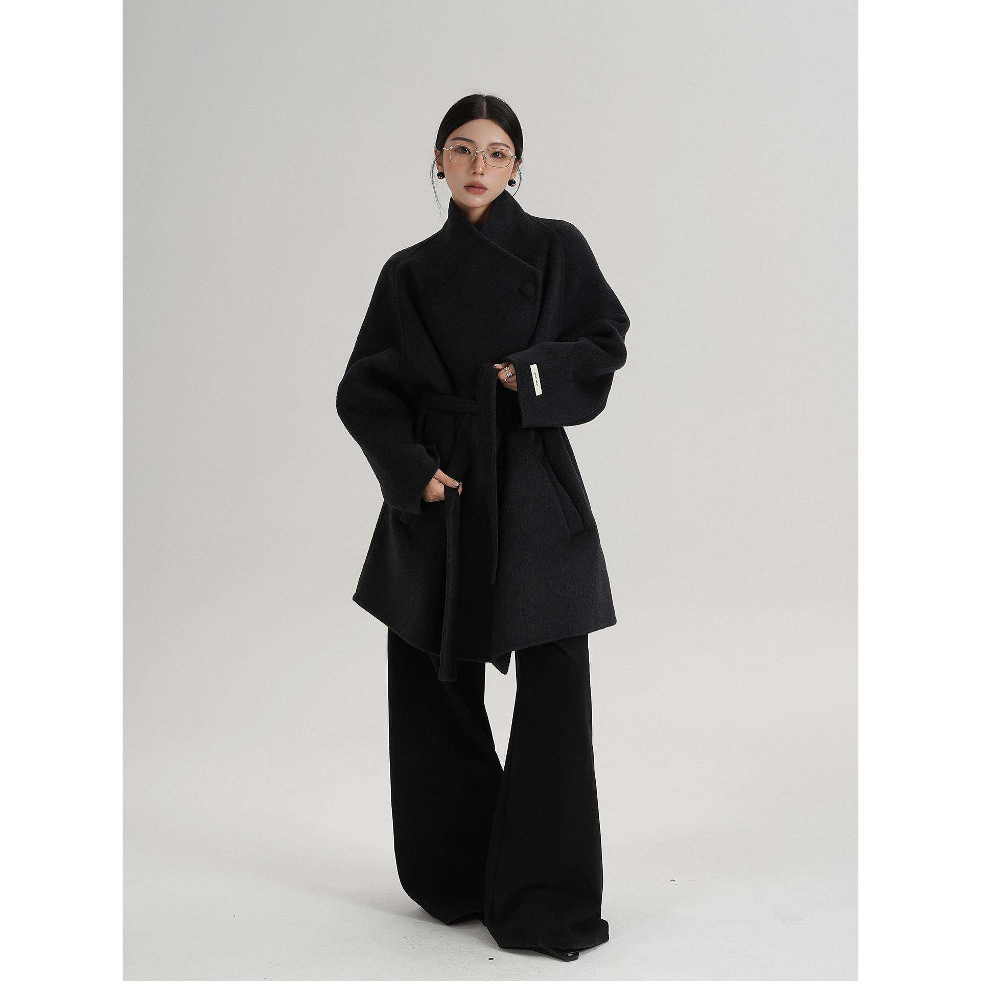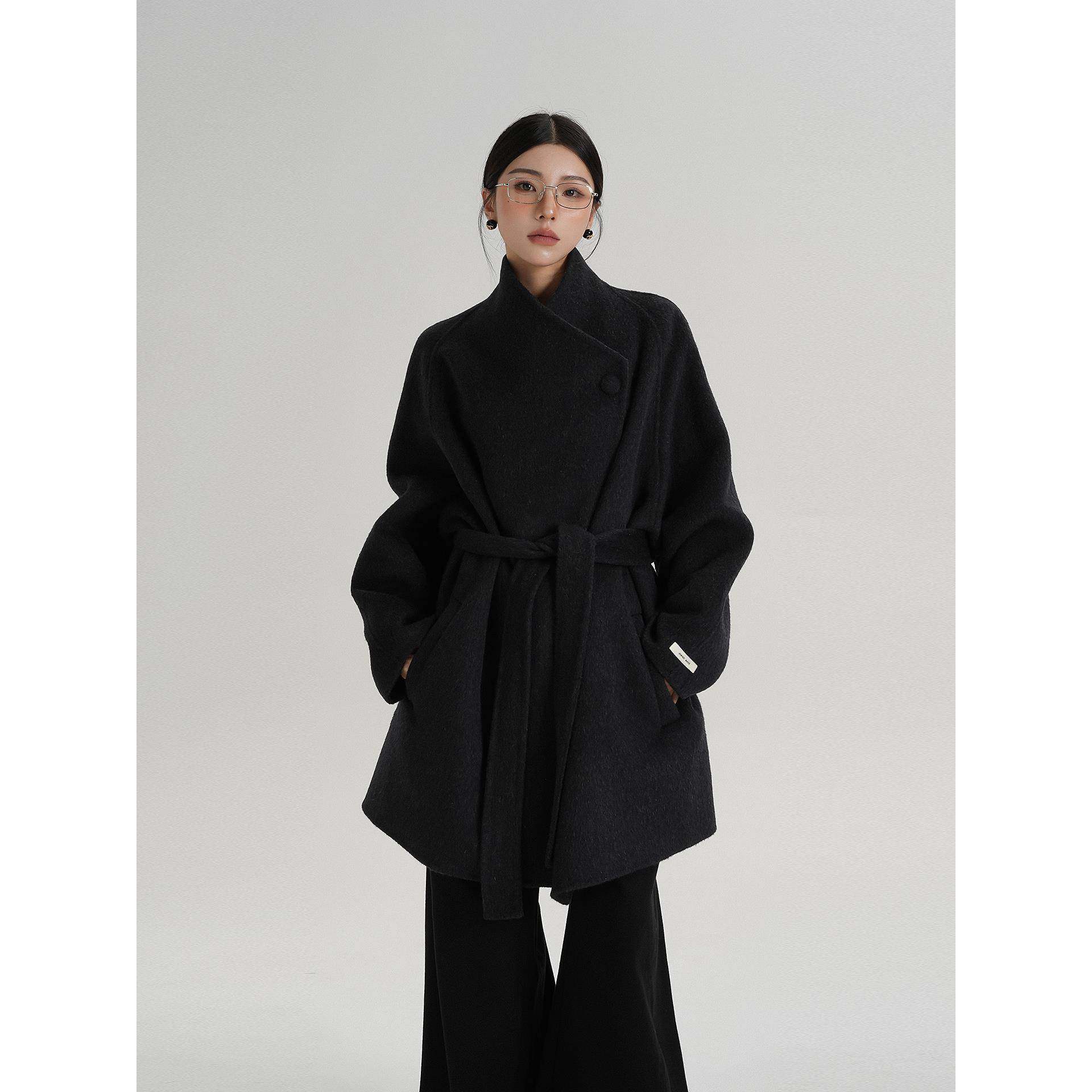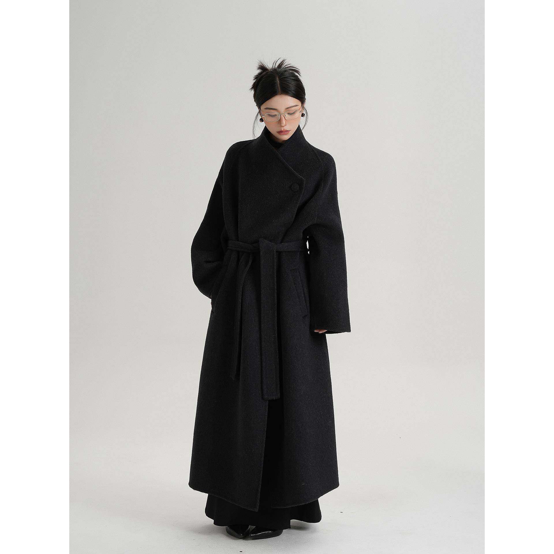 SRYS AME气质高级感中长款斜扣领羊毛大衣呢子毛呢外套秋冬装女装