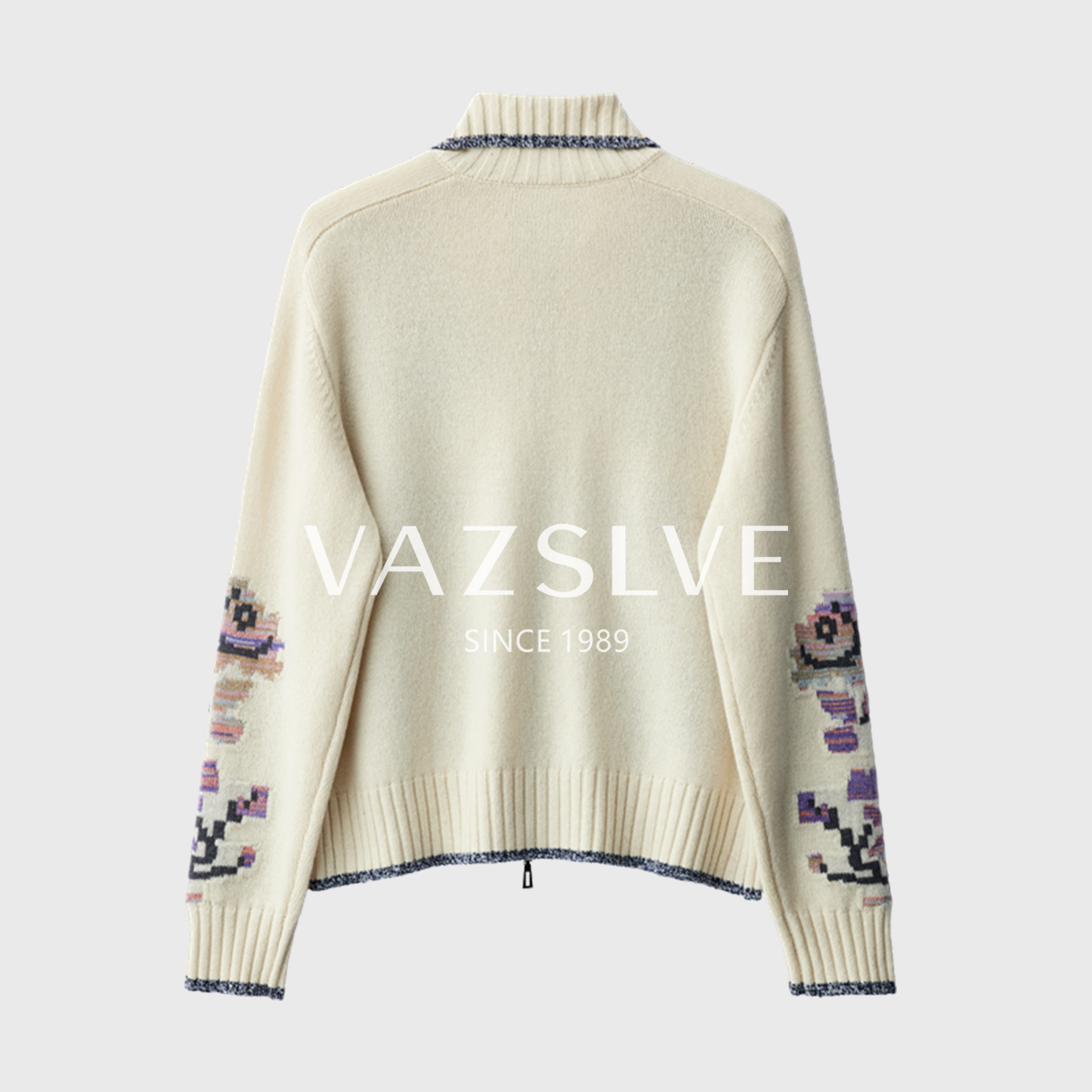 【羊绒+羊毛】超气质~法式独特重工提花撞色加厚毛衣双头拉链外套