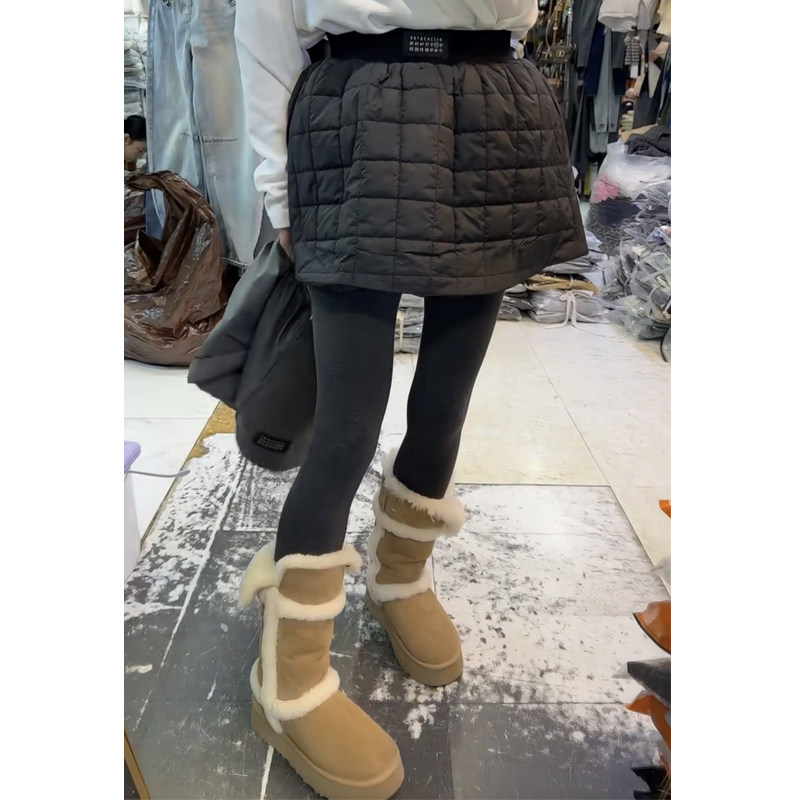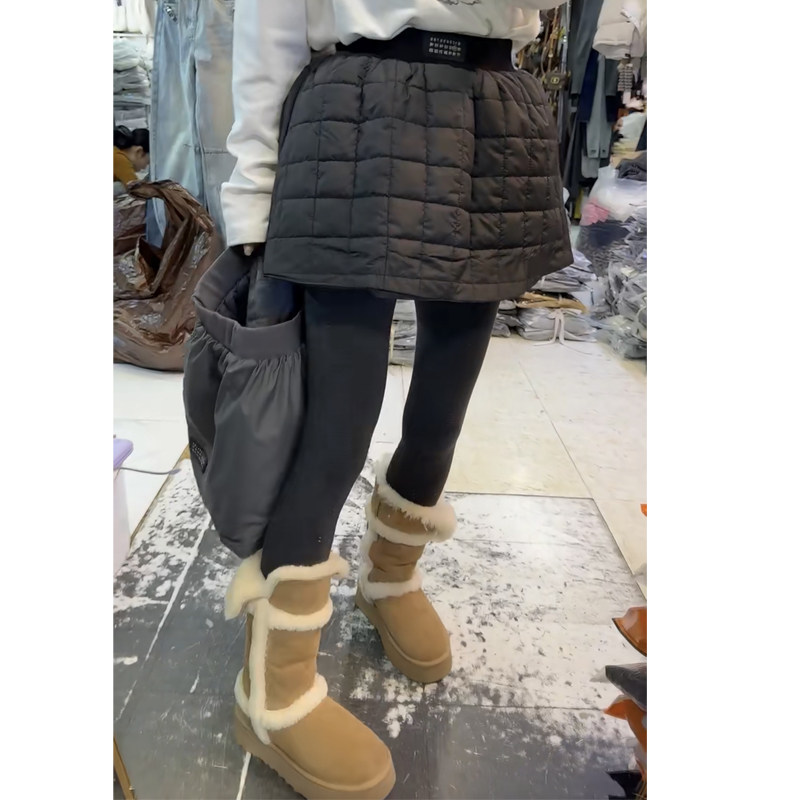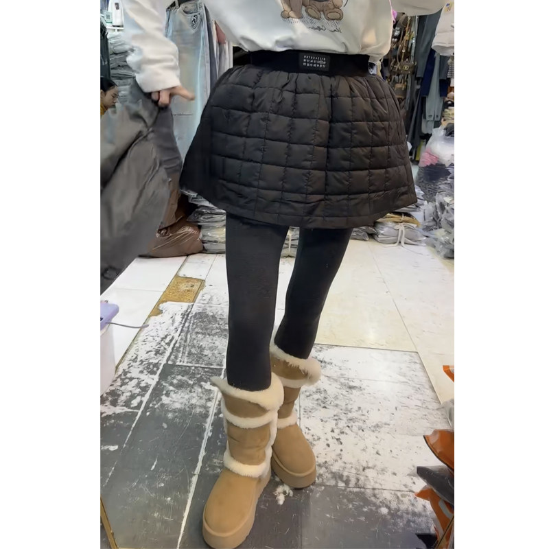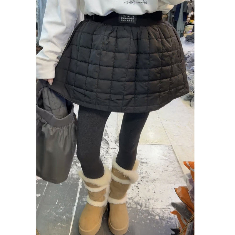 欧货秋冬新款夹棉花苞半身裙黑色短裙显瘦百搭韩版压格A字蓬蓬裙