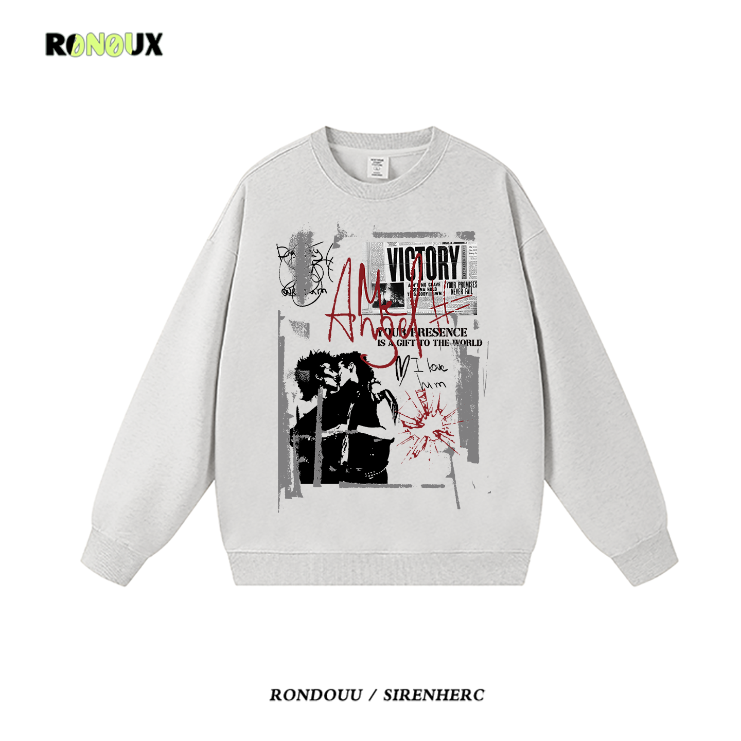 首页> 女装> 美式复古oversize重磅加绒加厚圆领卫衣女春秋无帽潮牌hiphop外套