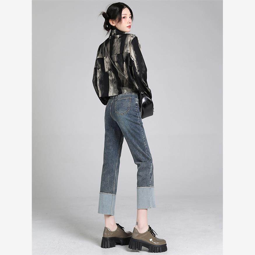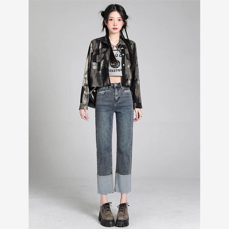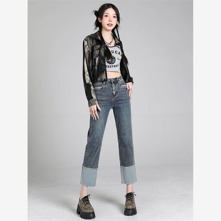 弹力直筒牛仔裤女款秋季新款设计感辣妹韩版宽松显瘦小个子烟管裤